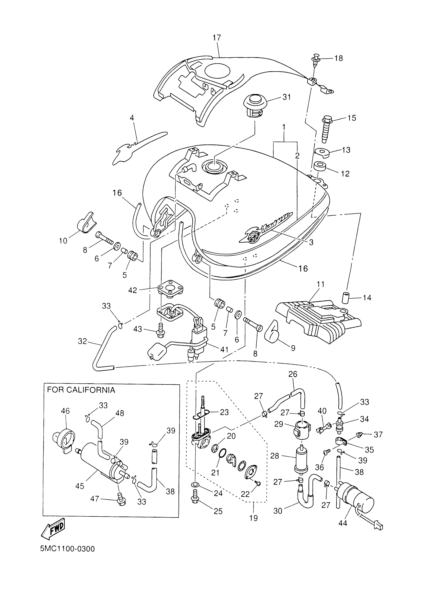 Yamaha XVZ1300TFSMC (ROYAL STAR VENTURE MM CA) 5MC2 2000 FUEL TANK Diagram