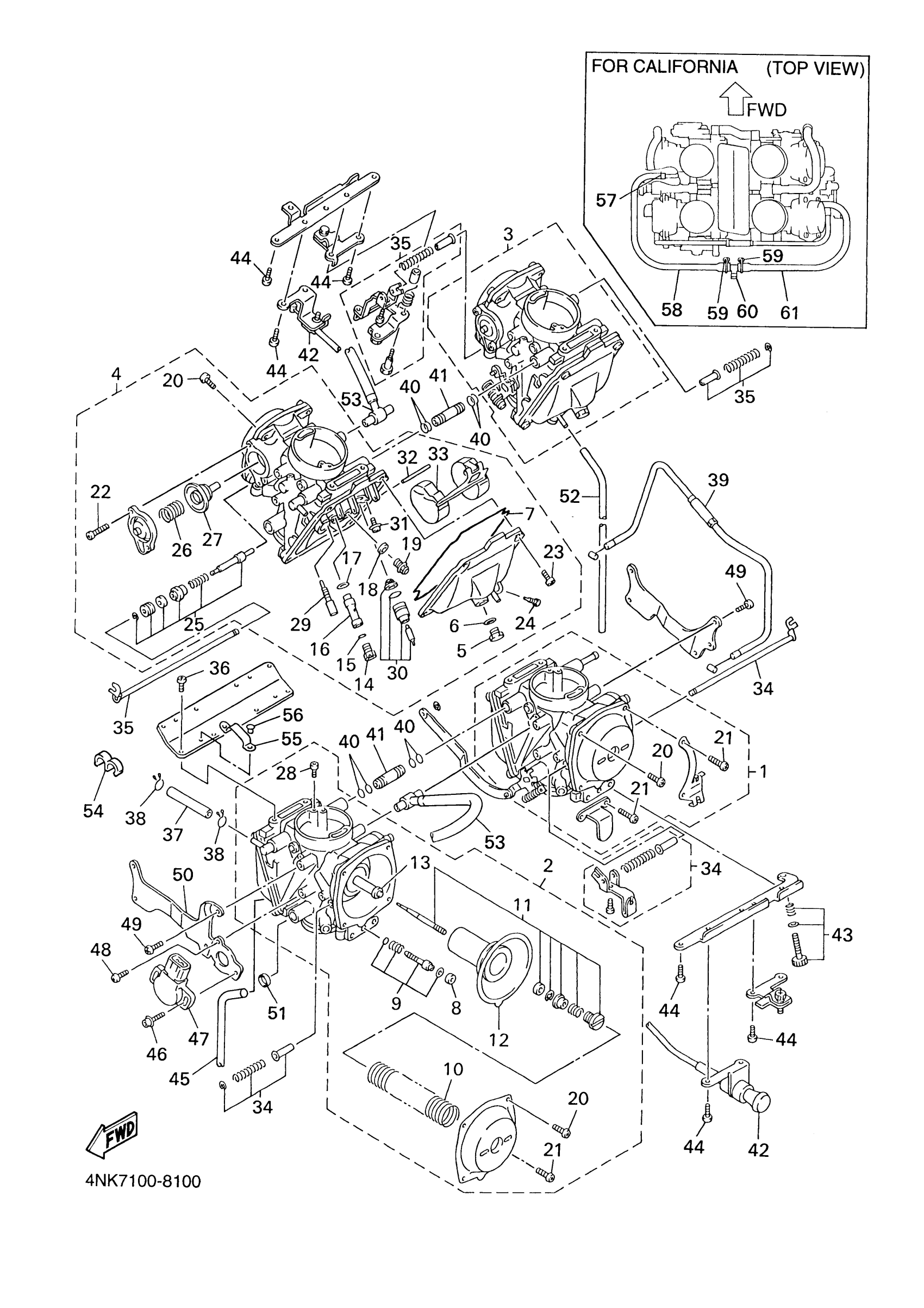 Yamaha XVZ13ALC (ROYAL STAR BOULEVARD CA) 4NKB 1999 CARBURETOR Diagram
