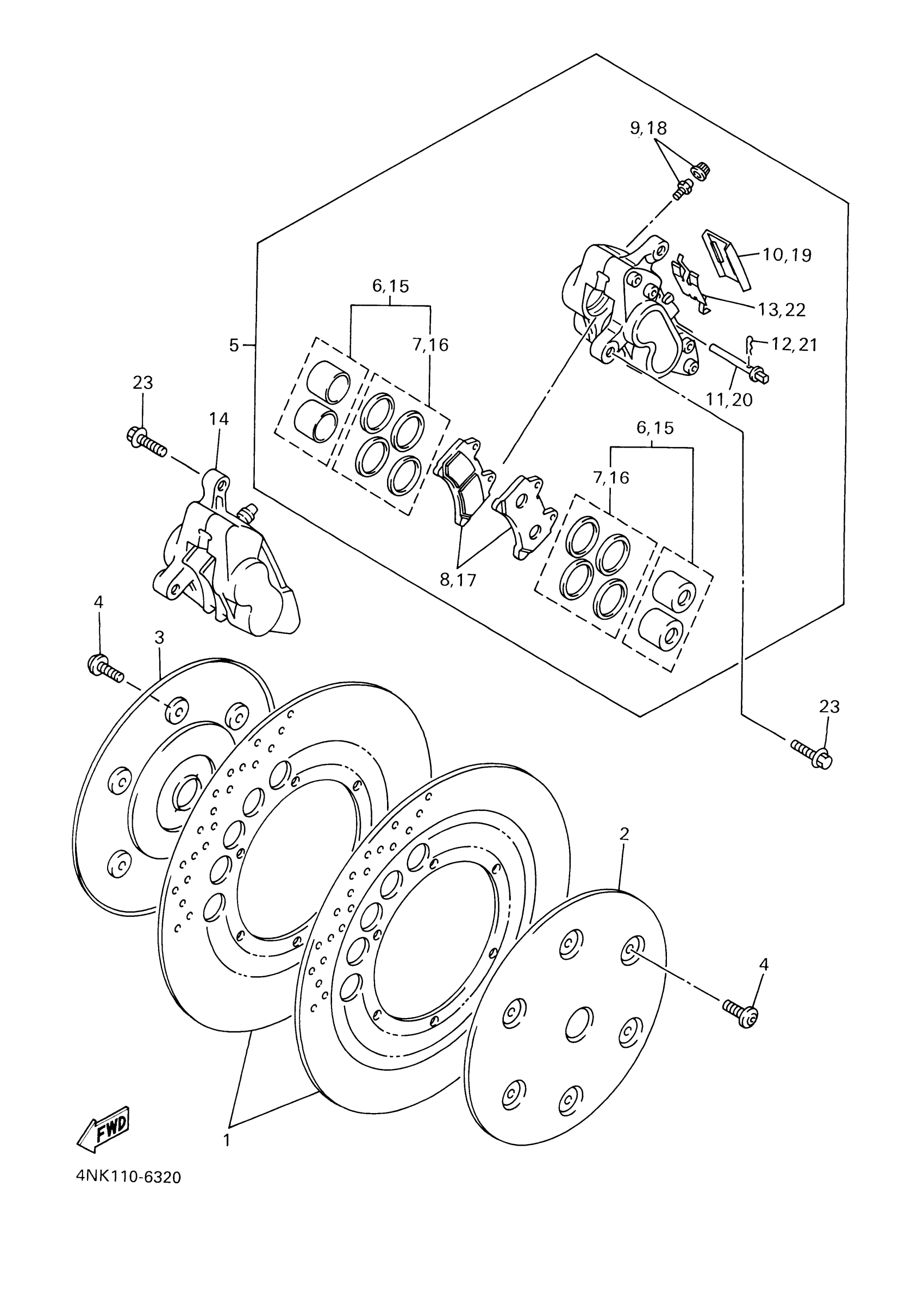 Yamaha XVZ13ALC (ROYAL STAR BOULEVARD CA) 4NKB 1999 FRONT BRAKE CALIPER Diagram