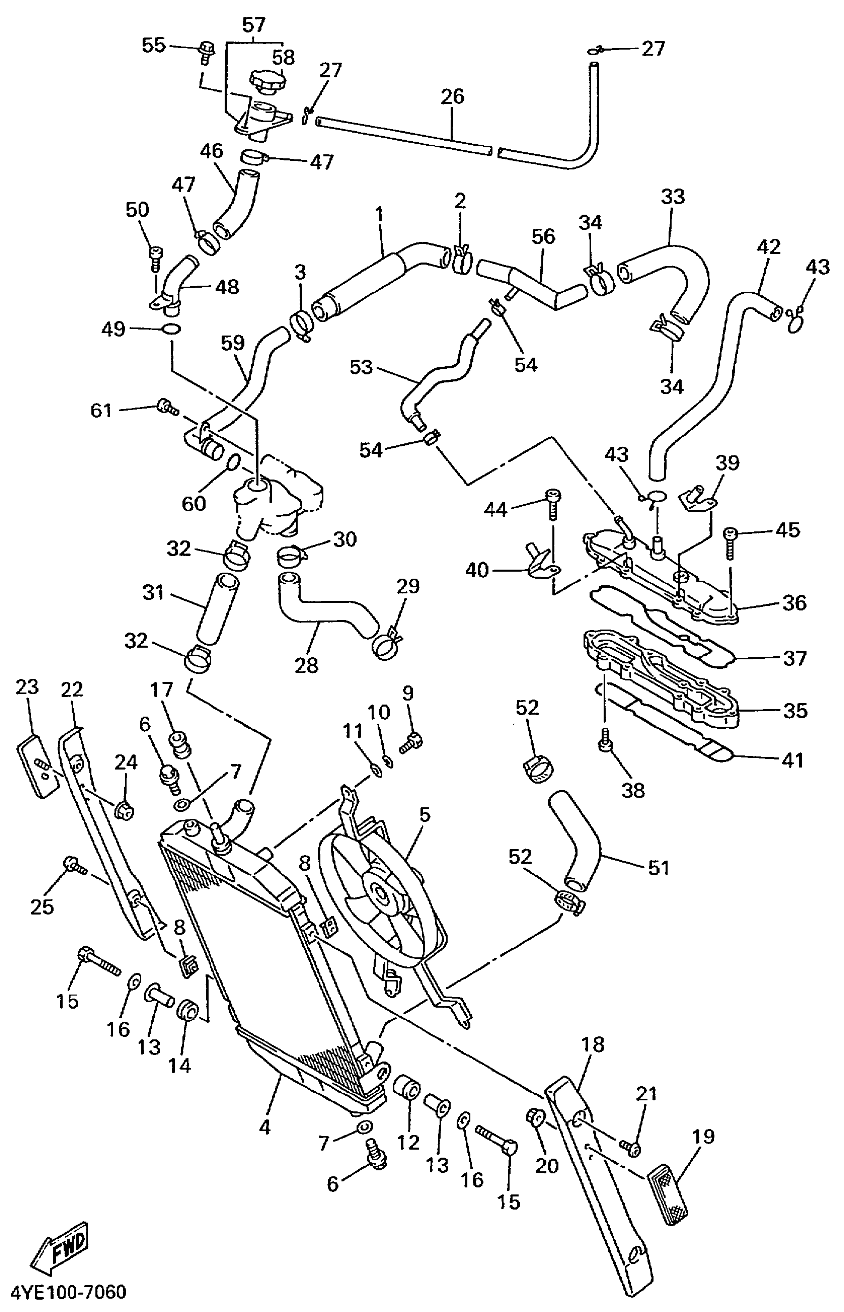 Yamaha XVZ13ATLC (ROYAL STAR TOUR CLASSIC CA) 5EJ6 1999 RADIATOR HOSE Diagram