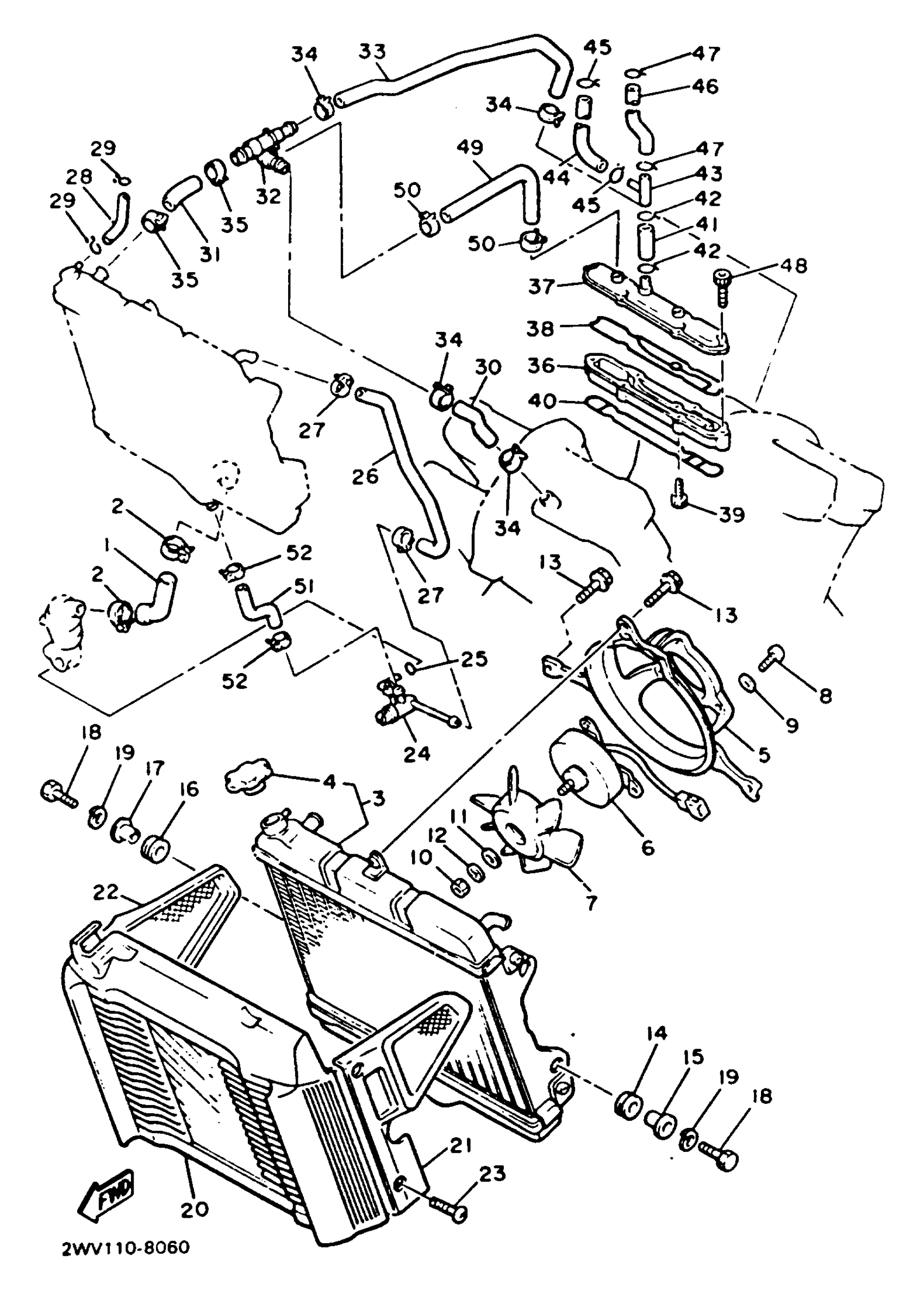 Yamaha XVZ13DBC (VENTURE ROYALE CA) 1991 RADIATOR HOSE Diagram