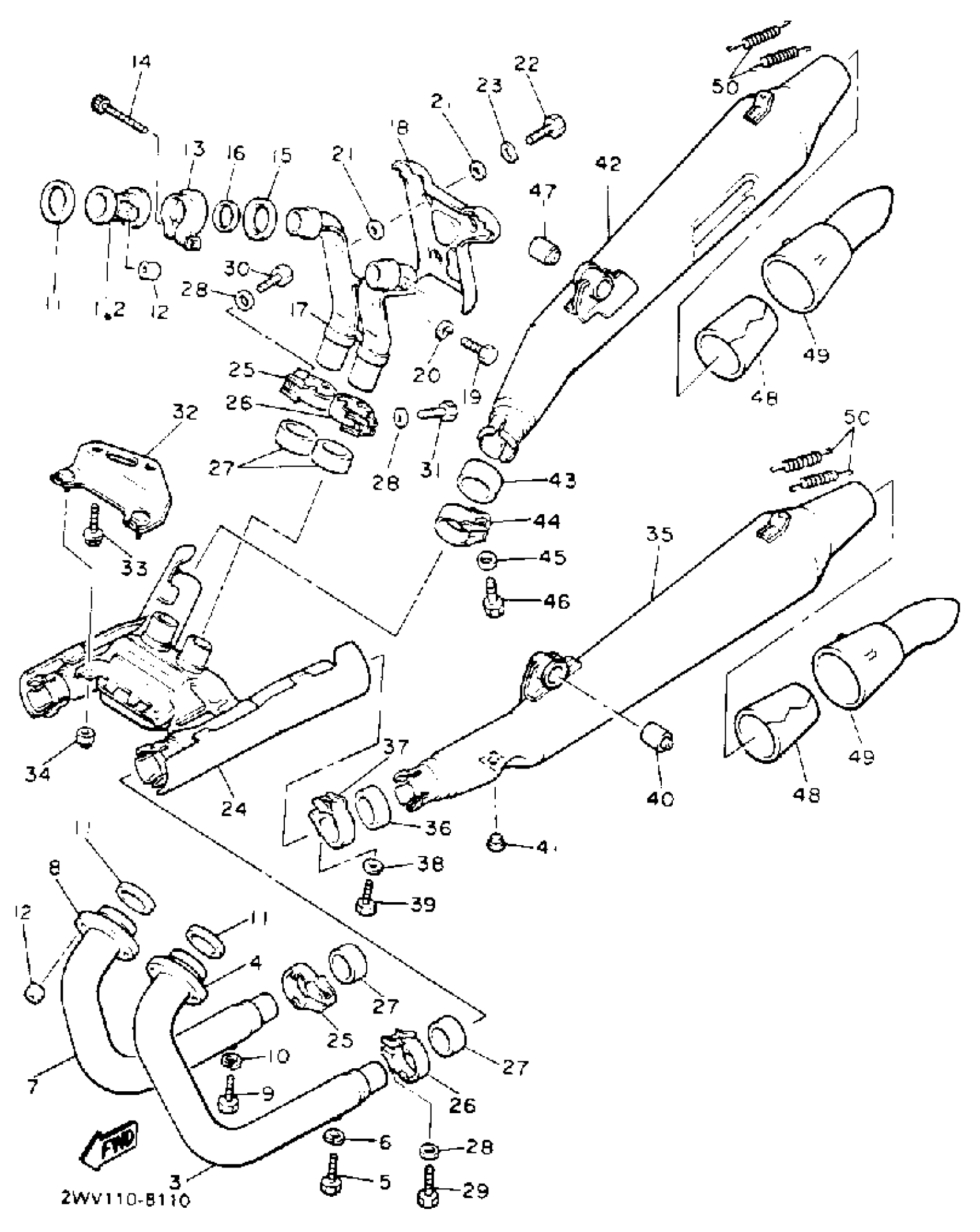 Yamaha XVZ13DWC (VENTURE ROYALE CA) 1989 EXHAUST Diagram