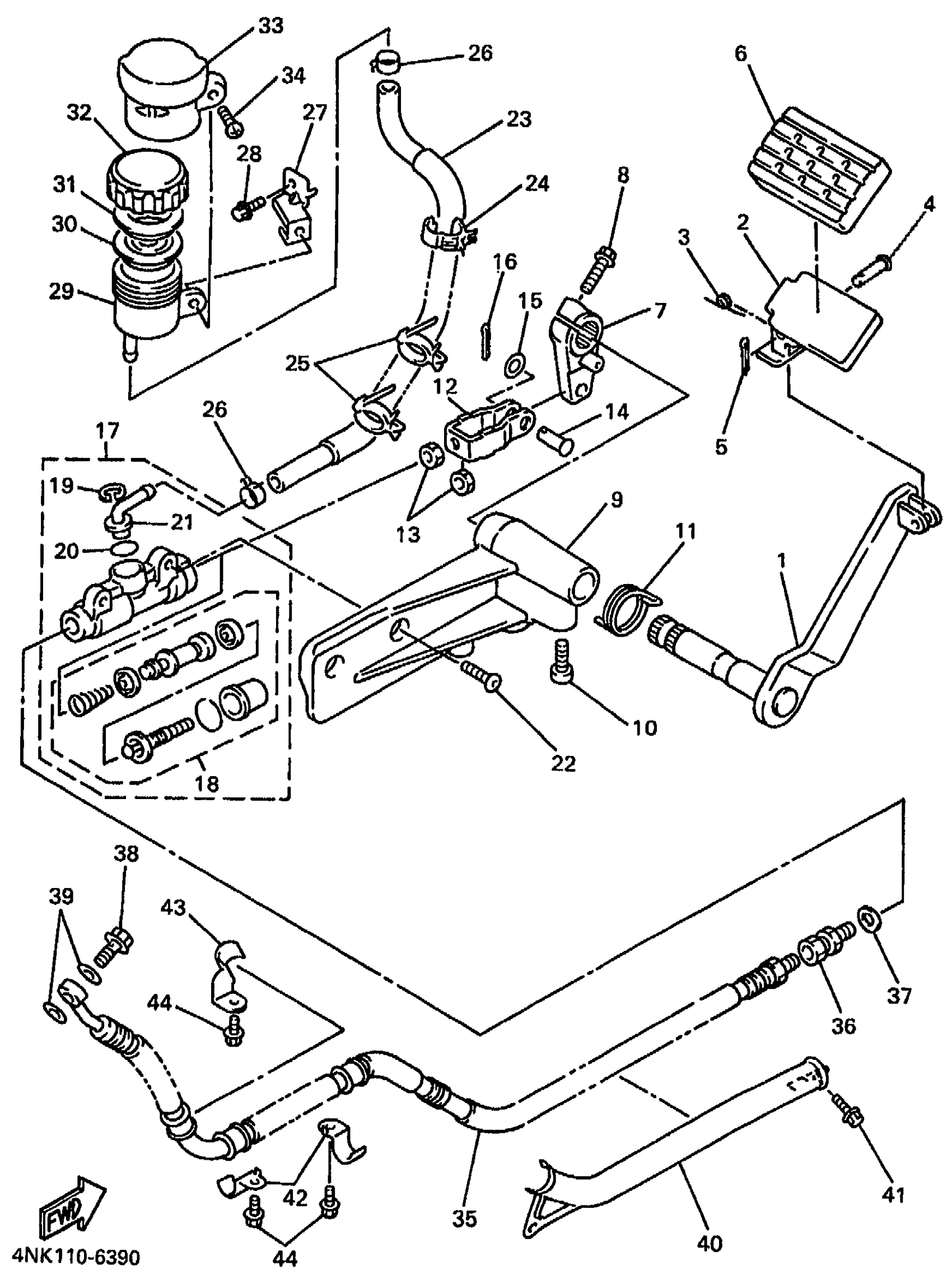Yamaha XVZ13LTKC (ROYAL STAR TOUR DELUXE CA) 4YE6 1998 REAR MASTER CYLINDER Diagram