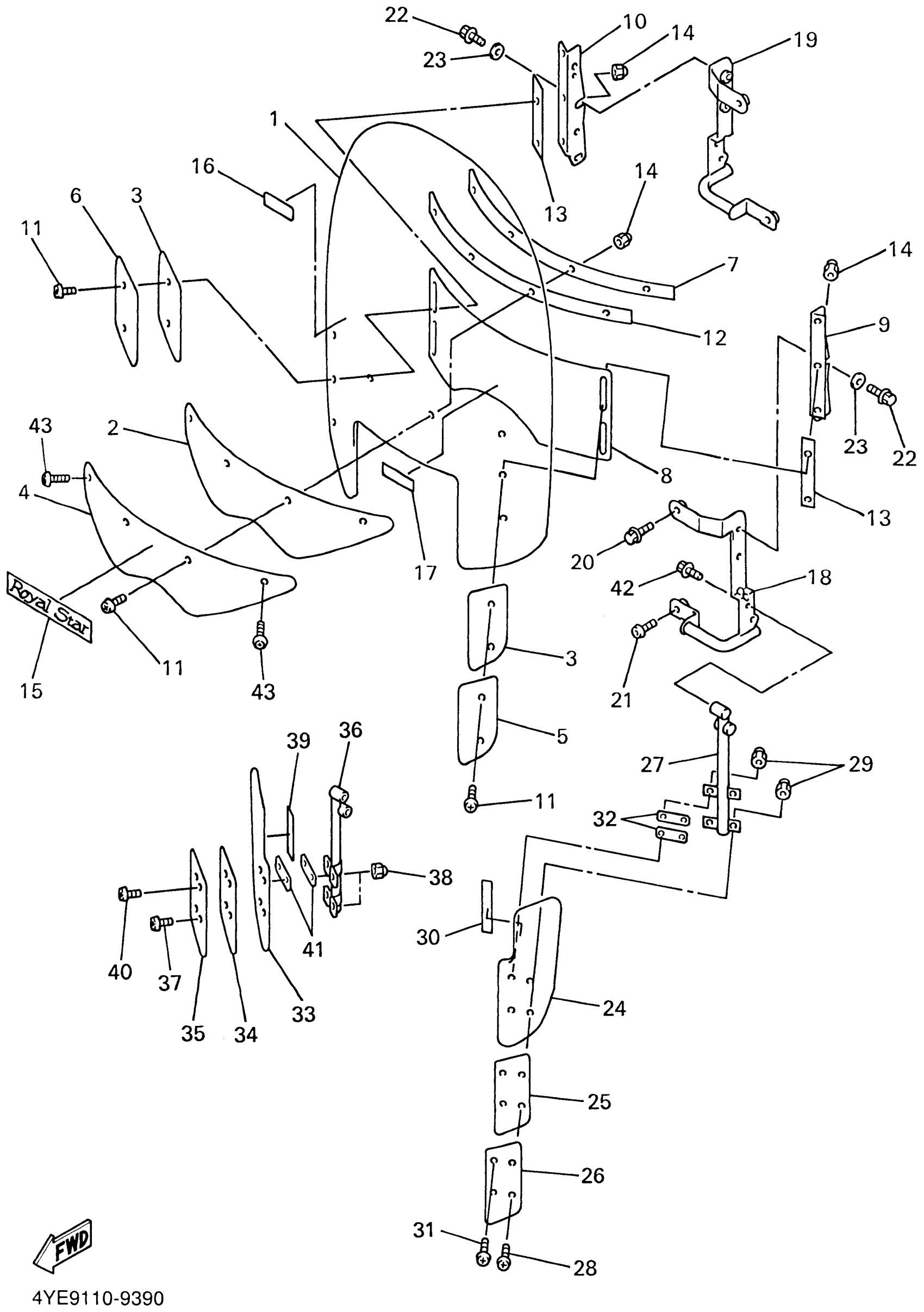 Yamaha XVZ13LTLC (ROYAL STAR TOUR DELUXE CA) 4YEA 1999 COWLING 1 Diagram