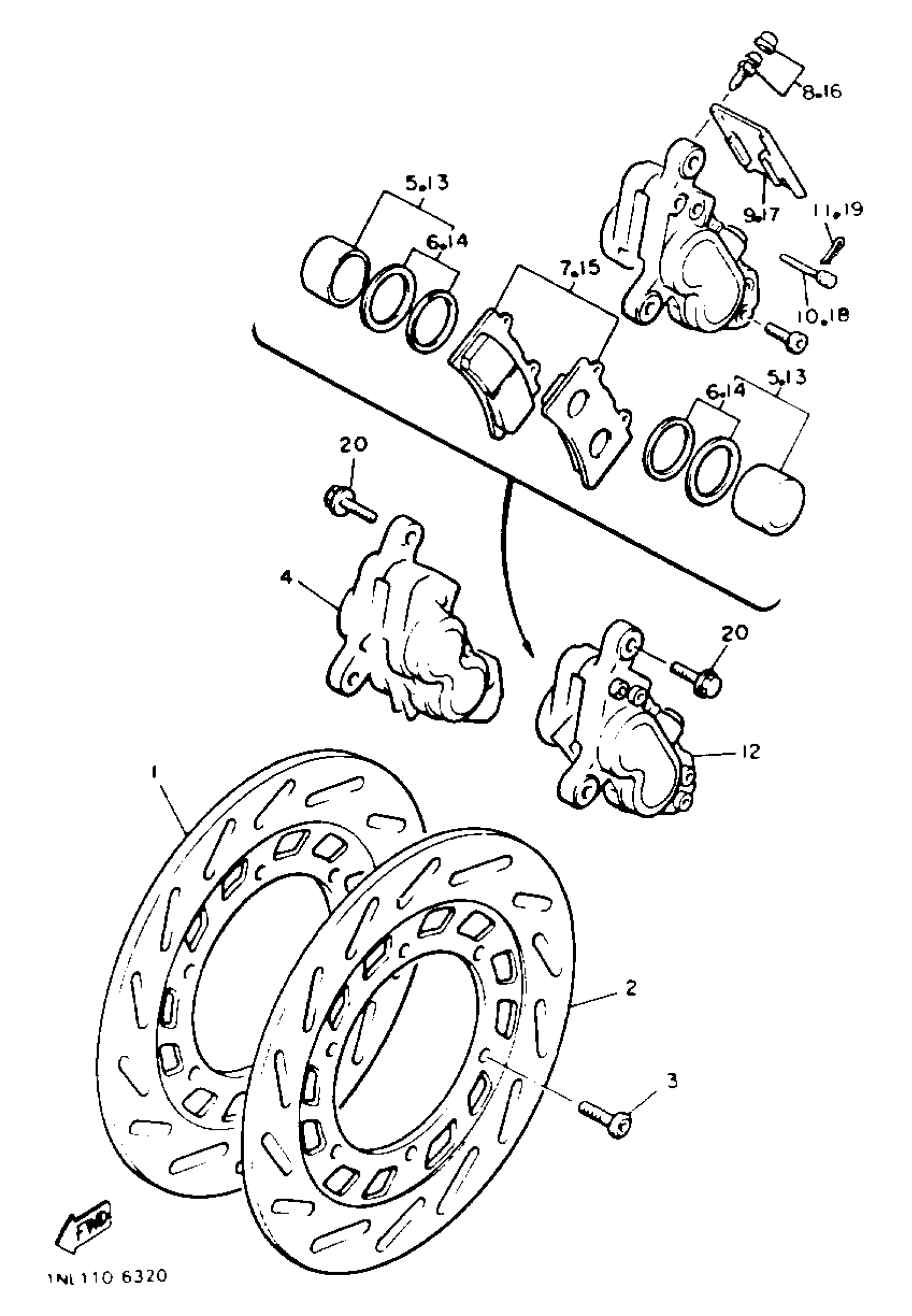Yamaha XVZ13TC (VENTURE CA) 1987 FRONT BRAKE CALIPER Diagram