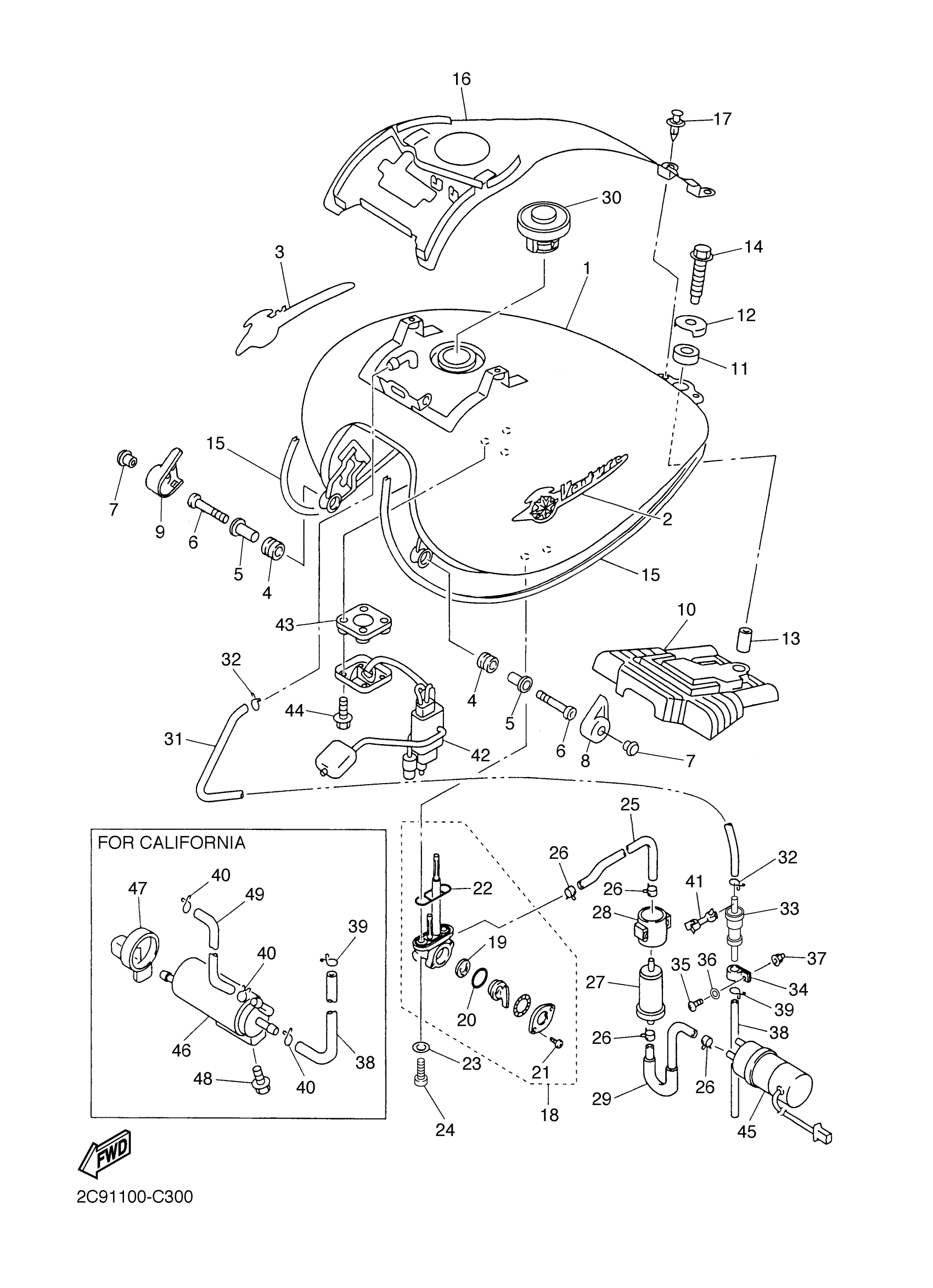 Yamaha XVZ13TFMTC (ROYAL STAR MIDNIGHT VENTURE CA) 2C92 2005 FUEL TANK Diagram