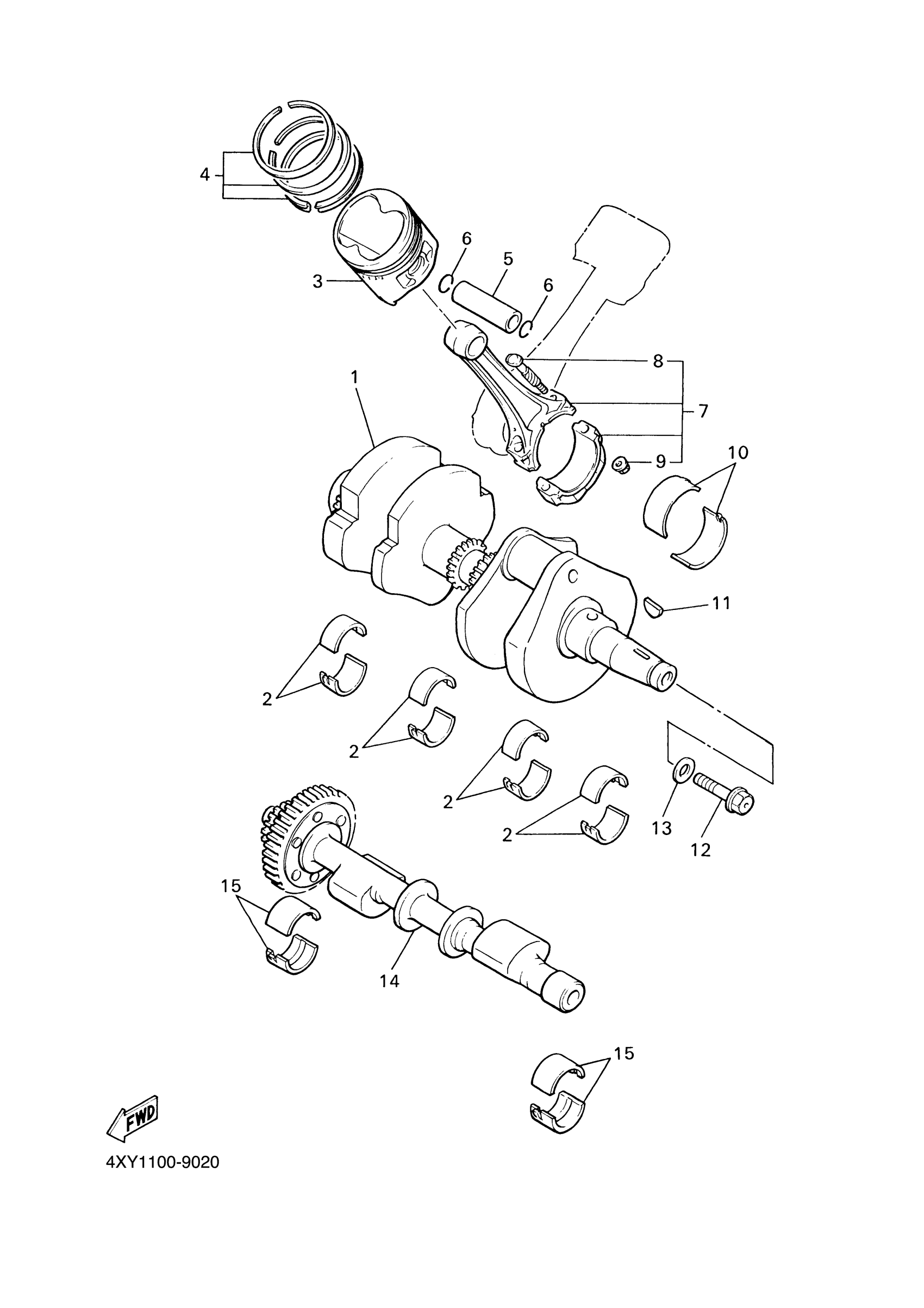 Yamaha XVZ13TFSC (ROYAL STAR VENTURE CA) 4XYU 2004 CRANKSHAFT PISTON Diagram