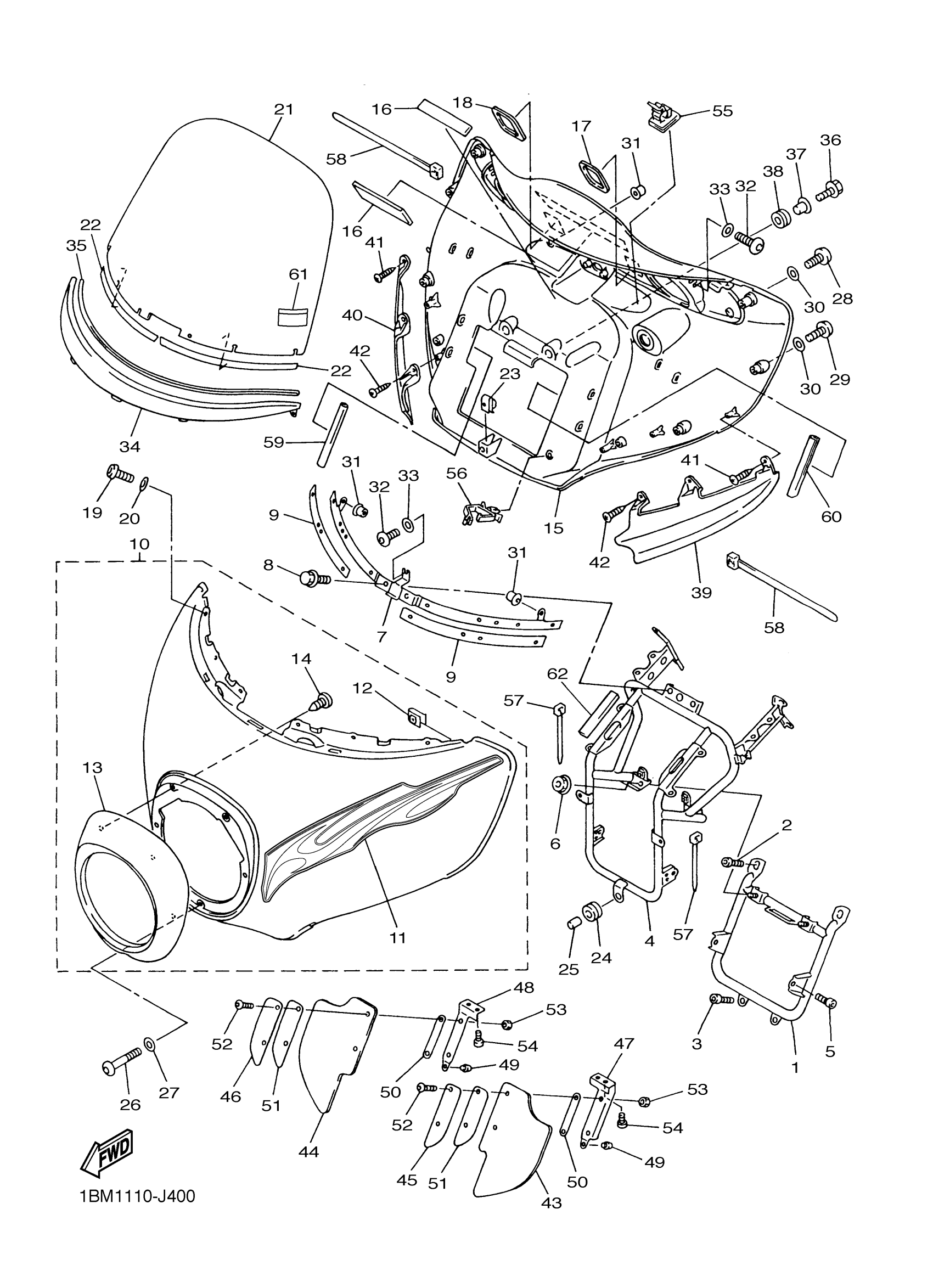 Yamaha XVZ13TFSZC (ROYAL STAR VENTURE S CA) 1BM2 2010 COWLING 1 Diagram