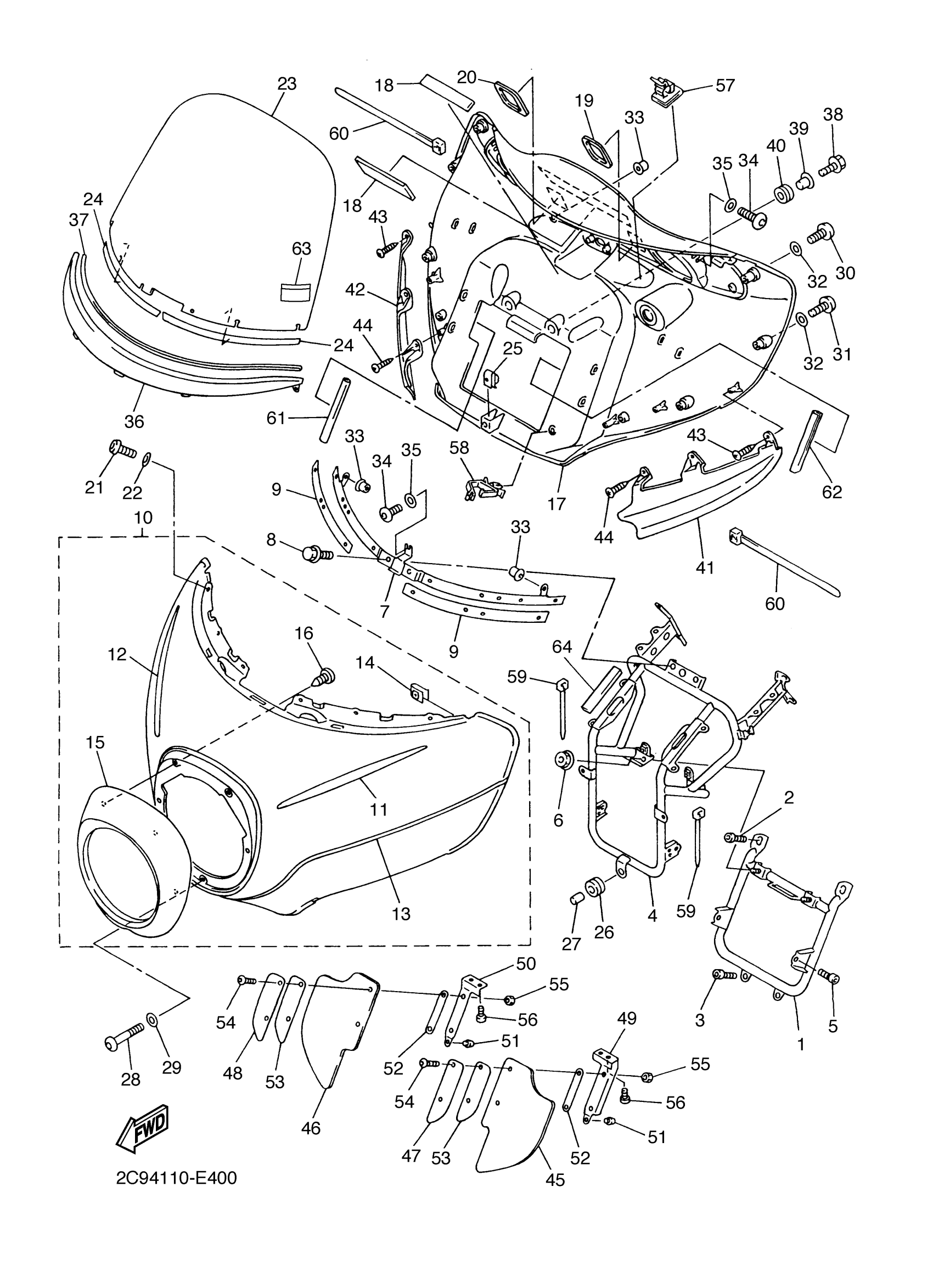 Yamaha XVZ13TFWC (ROYAL STAR VENTURE CA) 2C9B 2007 COWLING 1 Diagram