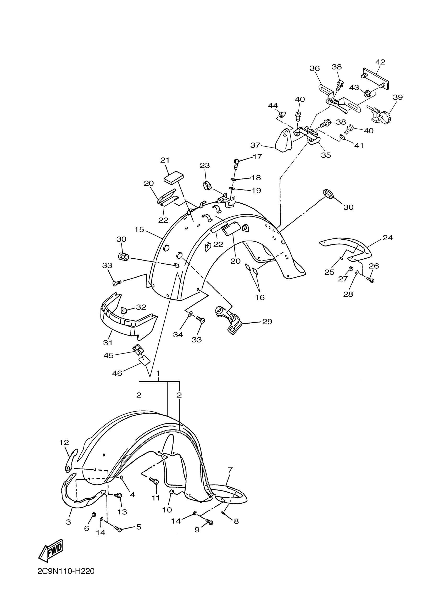 Yamaha XVZ13TFYR (ROYAL STAR VENTURE) 2C9N 2009 FENDER Diagram