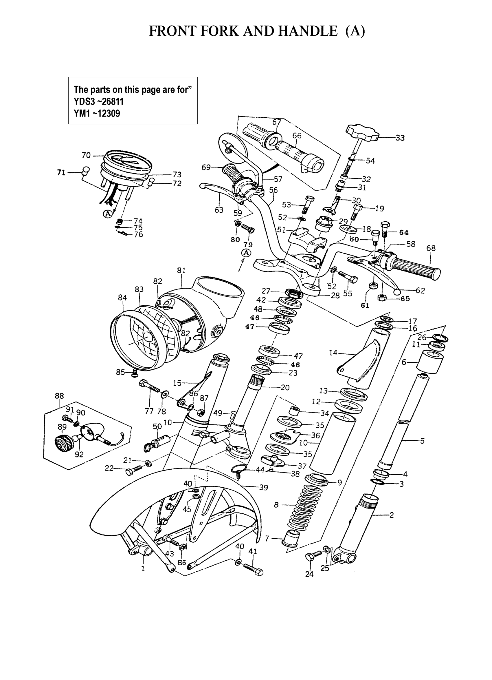 Yamaha YDS3 (YDS3_1966) 156 1964 FRONT FORK AND HANDLE A Diagram