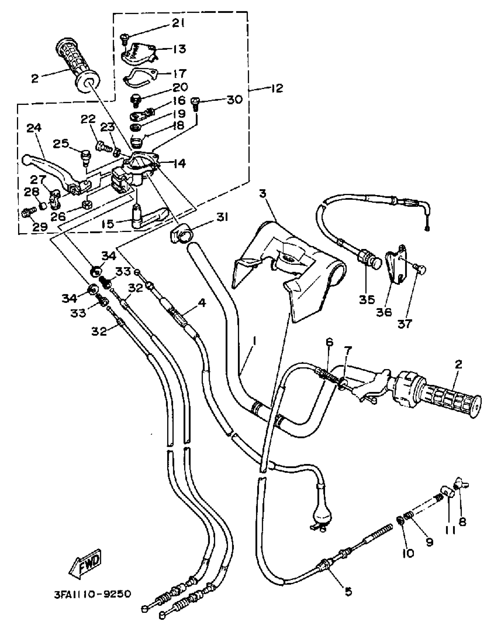 Yamaha YFA1B (BREEZE) 1991 HANDLEBAR CABLE Diagram