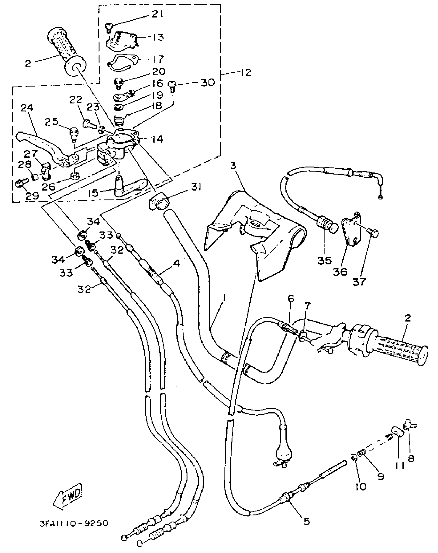 Yamaha YFA1E (BREEZE) 1993 HANDLEBAR - CABLE Diagram