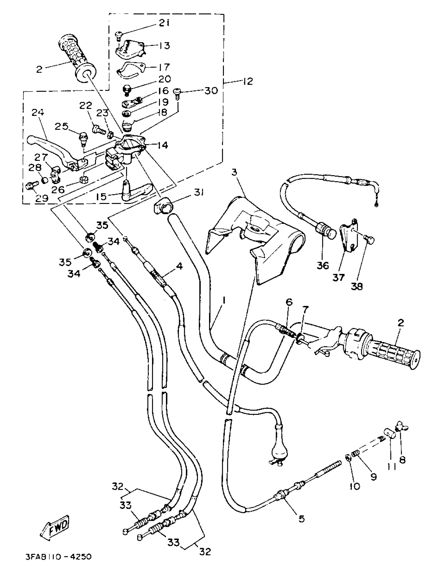 Yamaha YFA1F (BREEZE) 1994 HANDLEBAR - CABLE Diagram