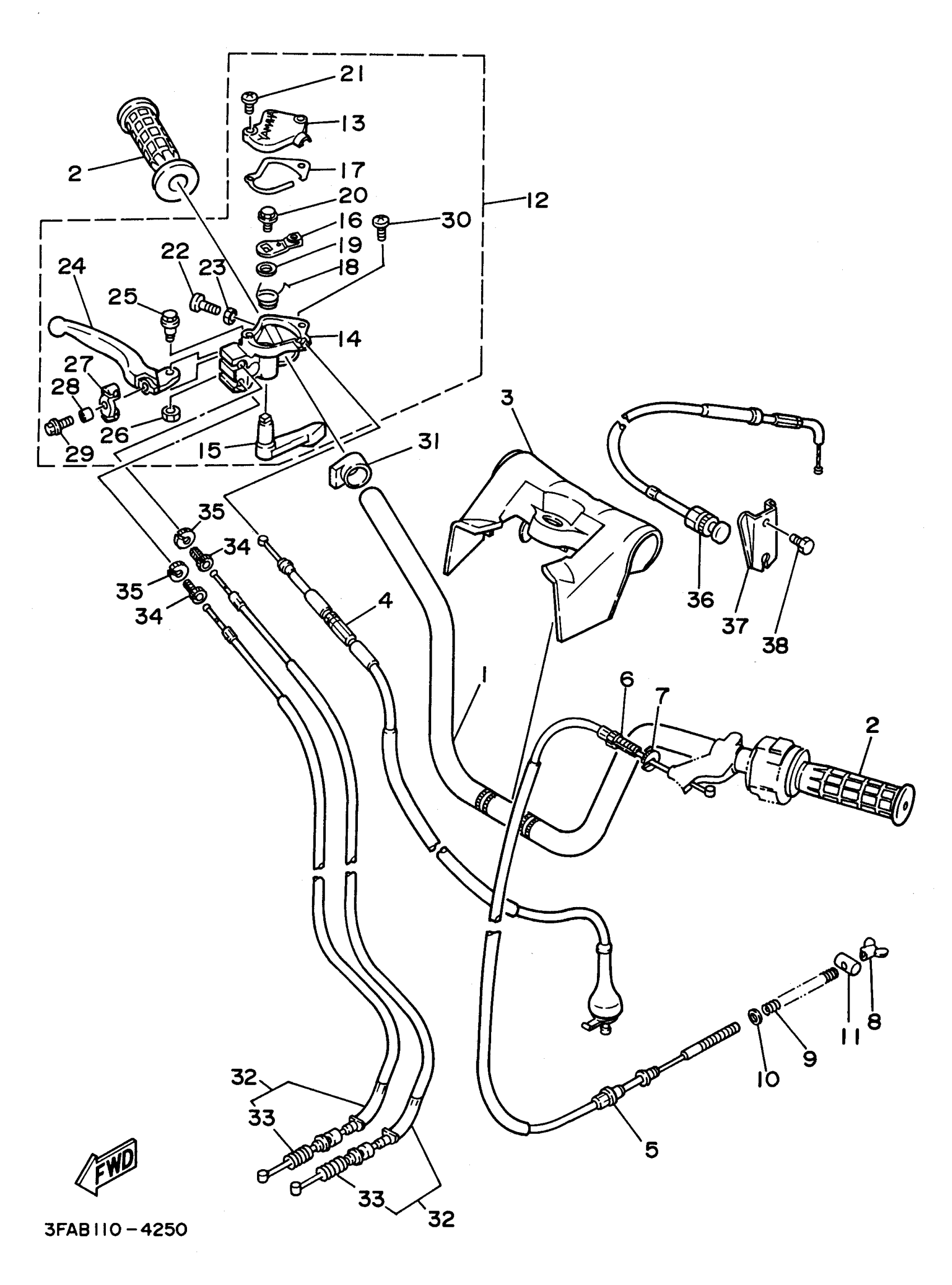 Yamaha YFA1H (BREEZE) 1996 STEERING HANDLE CABLE Diagram