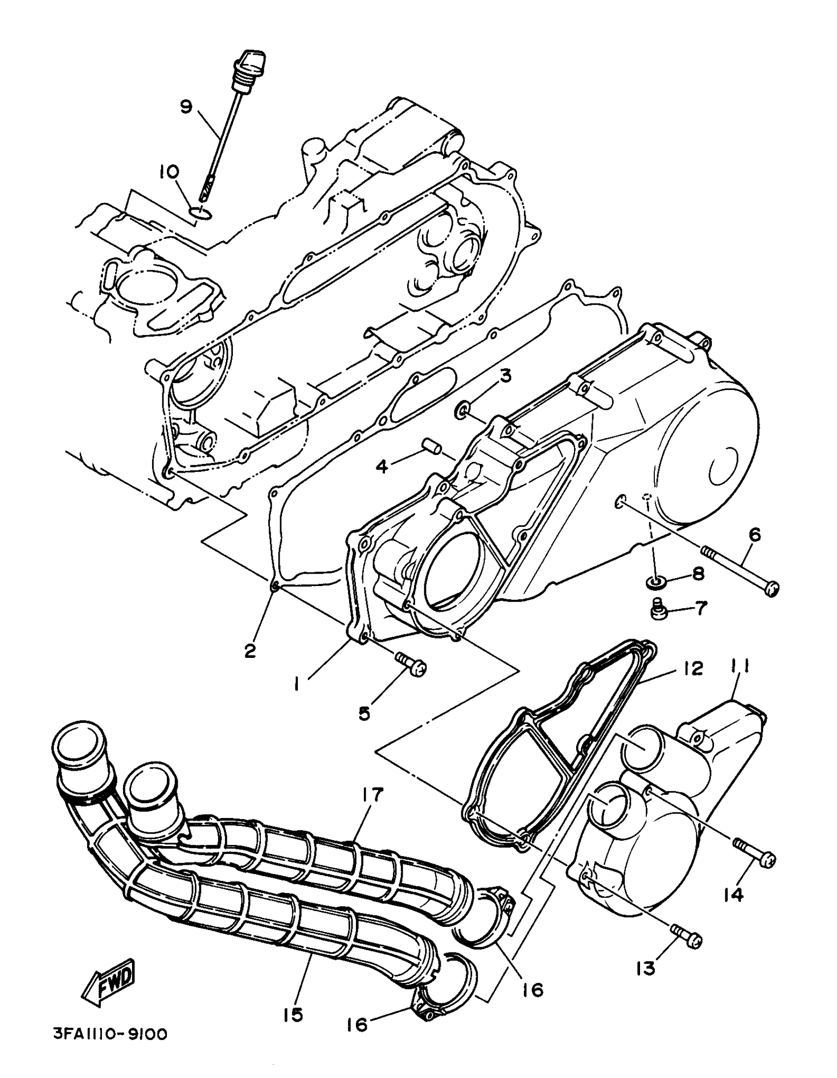 Yamaha YFA1J (BREEZE) 3FAH 1997 CRANKCASE COVER 1 Diagram