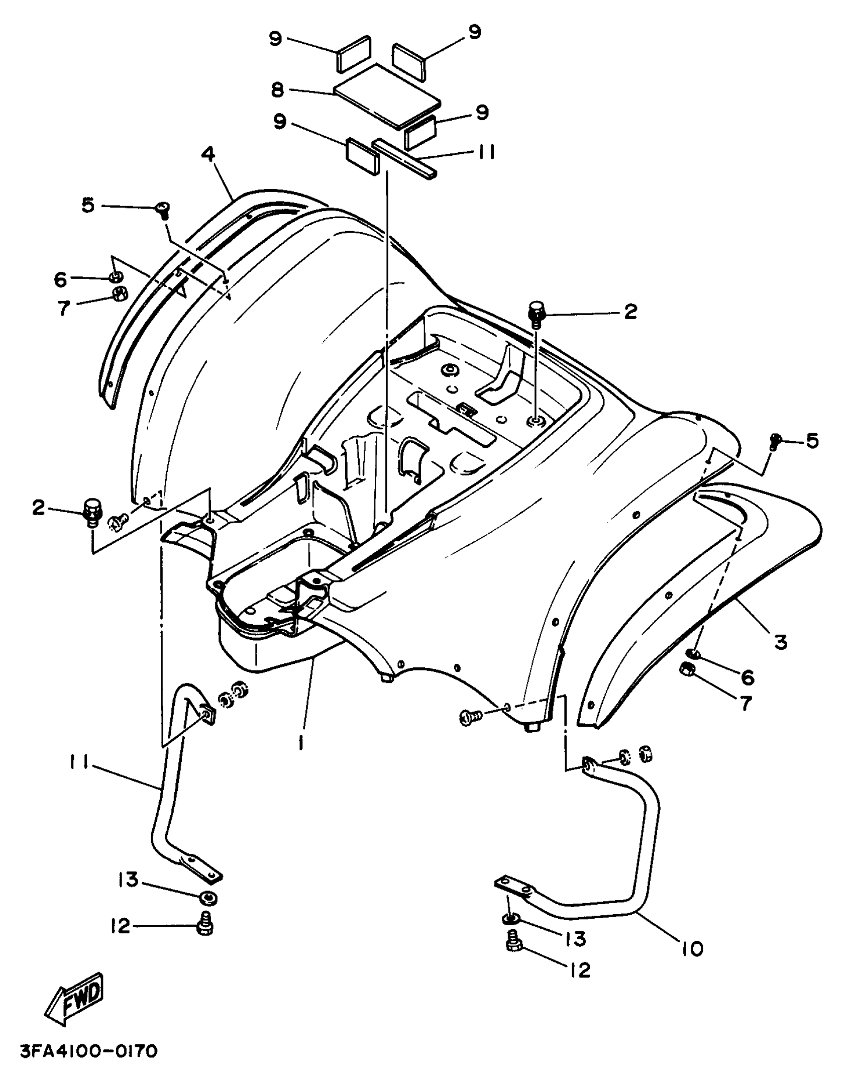 Yamaha YFA1J (BREEZE) 3FAH 1997 REAR FENDER Diagram