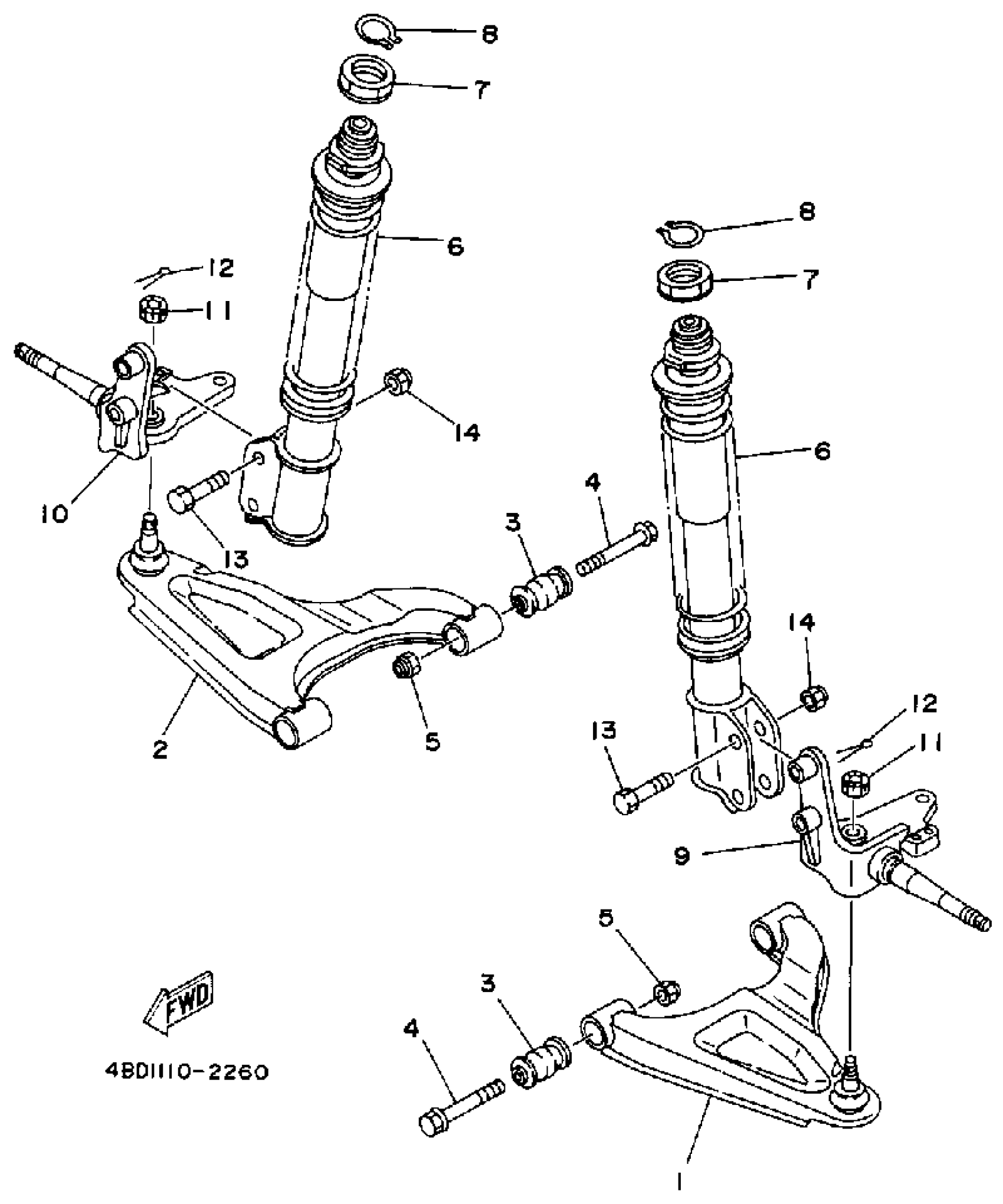 Yamaha YFB250D_MNH (TIMBERWOLF 2WD) 1992 FRONT SUSPENSION-WHEEL Diagram