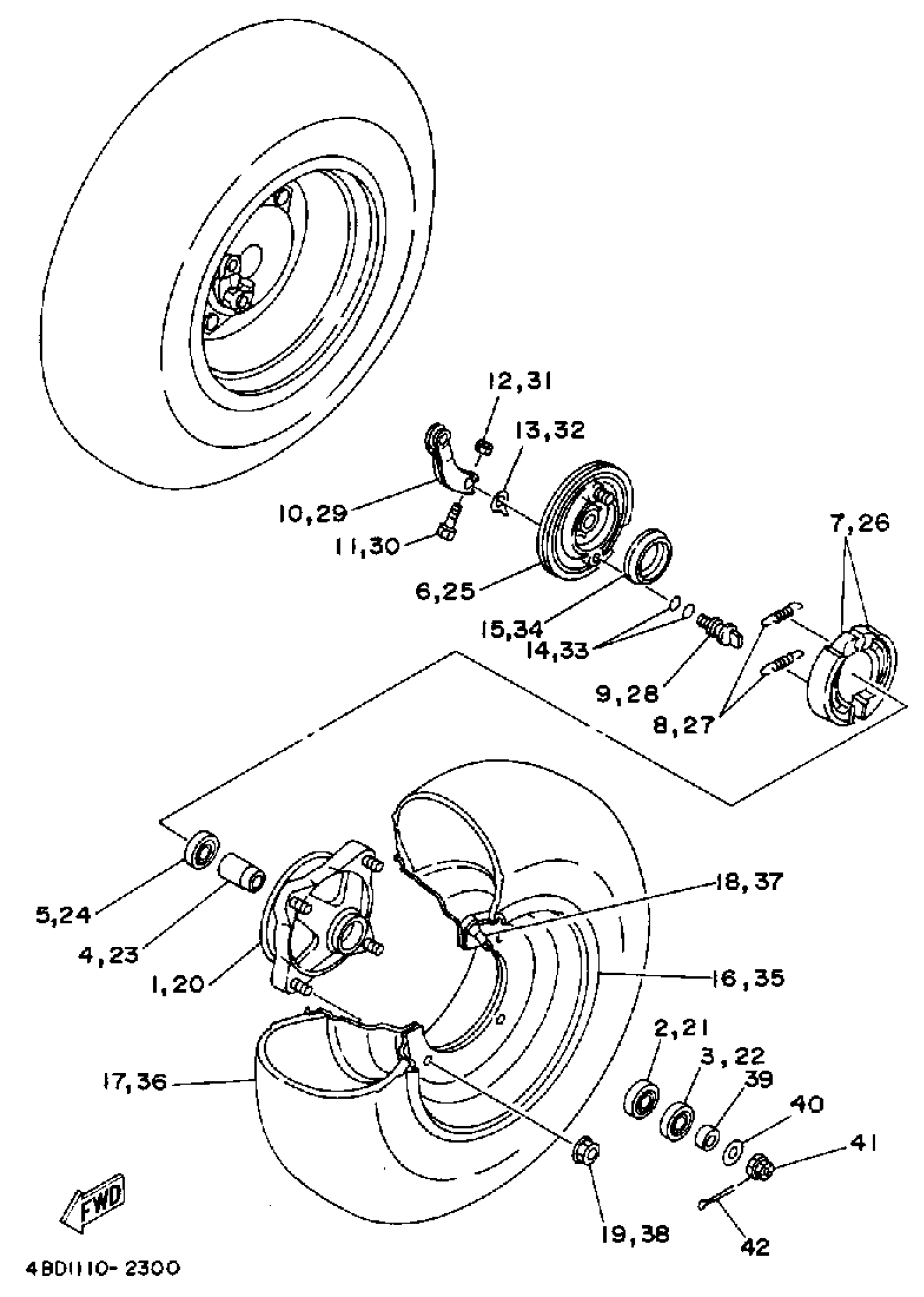 Yamaha YFB250D_MNH (TIMBERWOLF 2WD) 1992 FRONT WHEEL Diagram