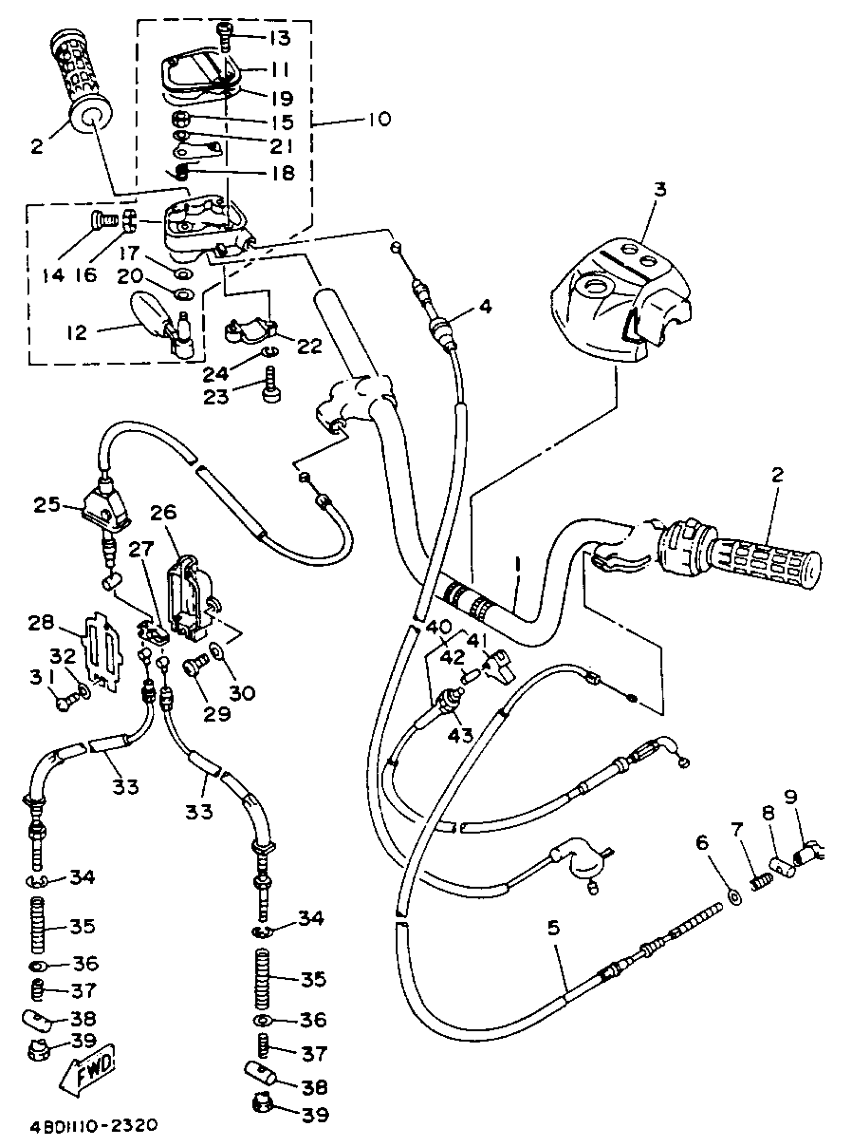 Yamaha YFB250E_MNH 1993 HANDLEBAR - CABLE Diagram