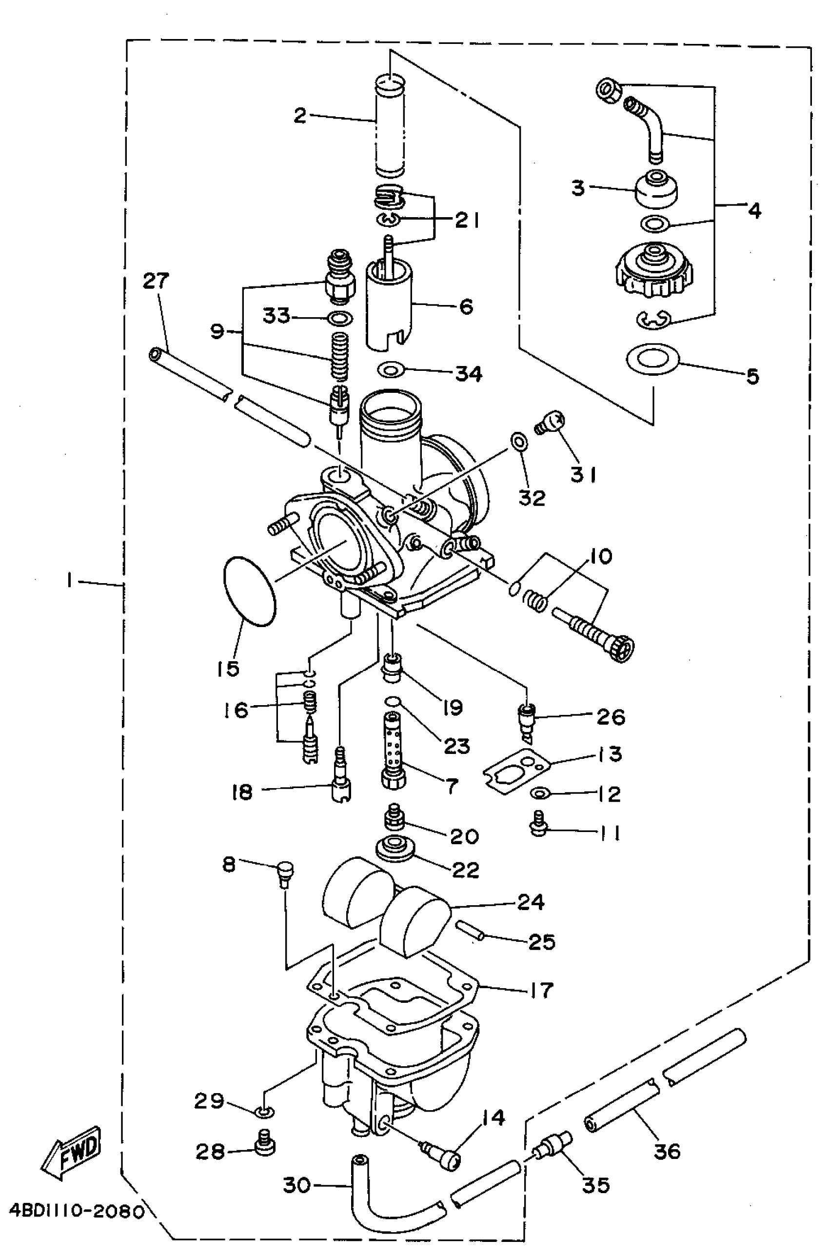 Yamaha YFB250F (TIMBERWOLF 2WD) 4BD8 1994 CARBURETOR Diagram