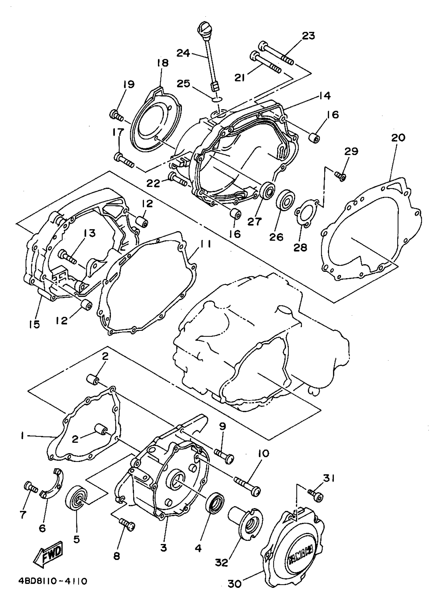 Yamaha YFB250F (TIMBERWOLF 2WD) 4BD8 1994 CRANKCASE COVER 1 Diagram
