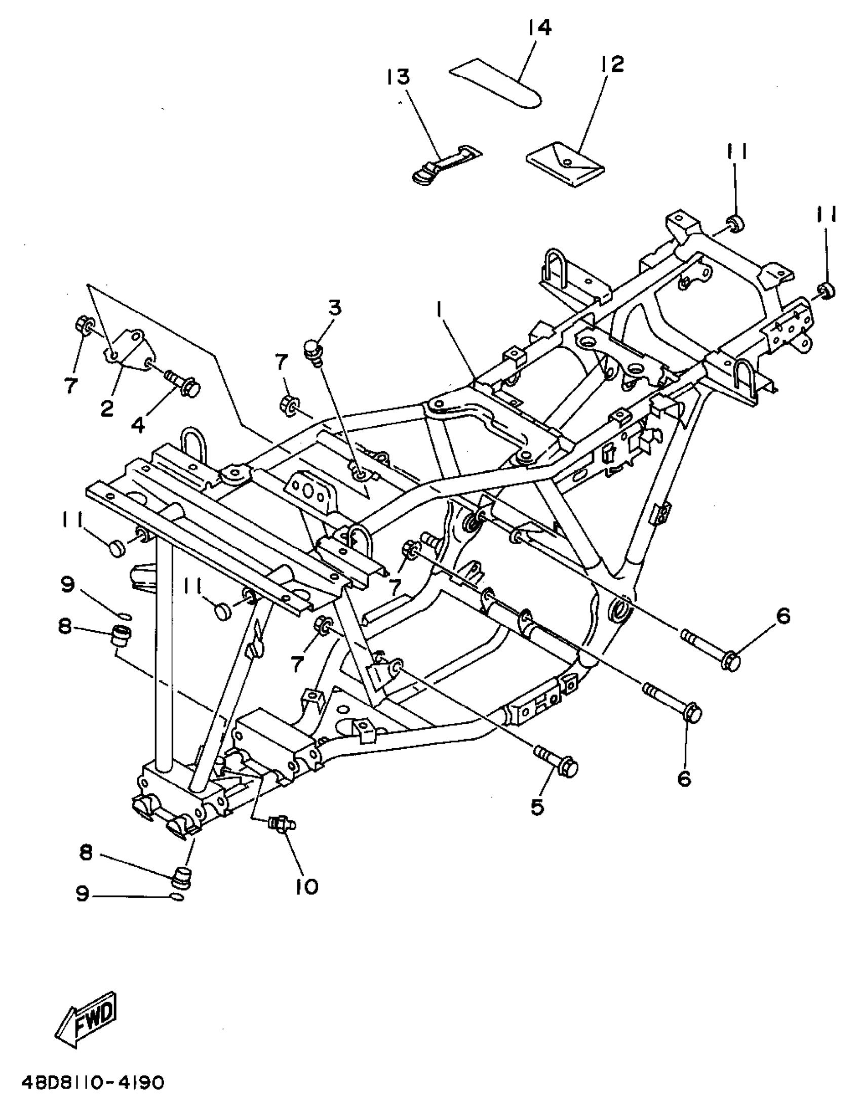Yamaha YFB250F (TIMBERWOLF 2WD) 4BD8 1994 FRAME Diagram