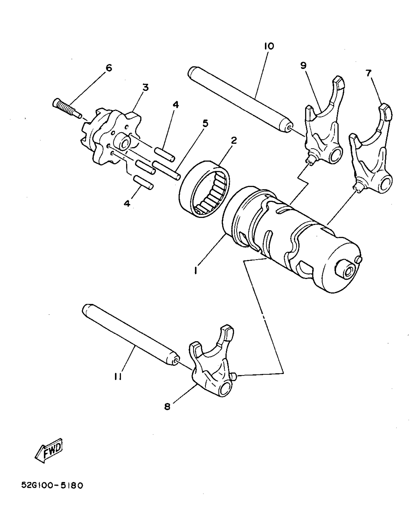 Yamaha YFB250F (TIMBERWOLF 2WD) 4BD8 1994 SHIFT CAM - SHIFT FORK Diagram