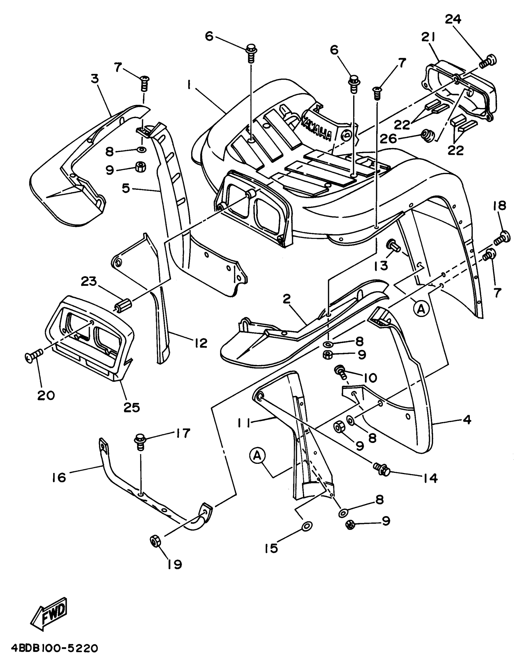 Yamaha YFB250FWG_MNH (TIMBERWOLF 4WD) 4KD4 1995 FRONT FENDER Diagram