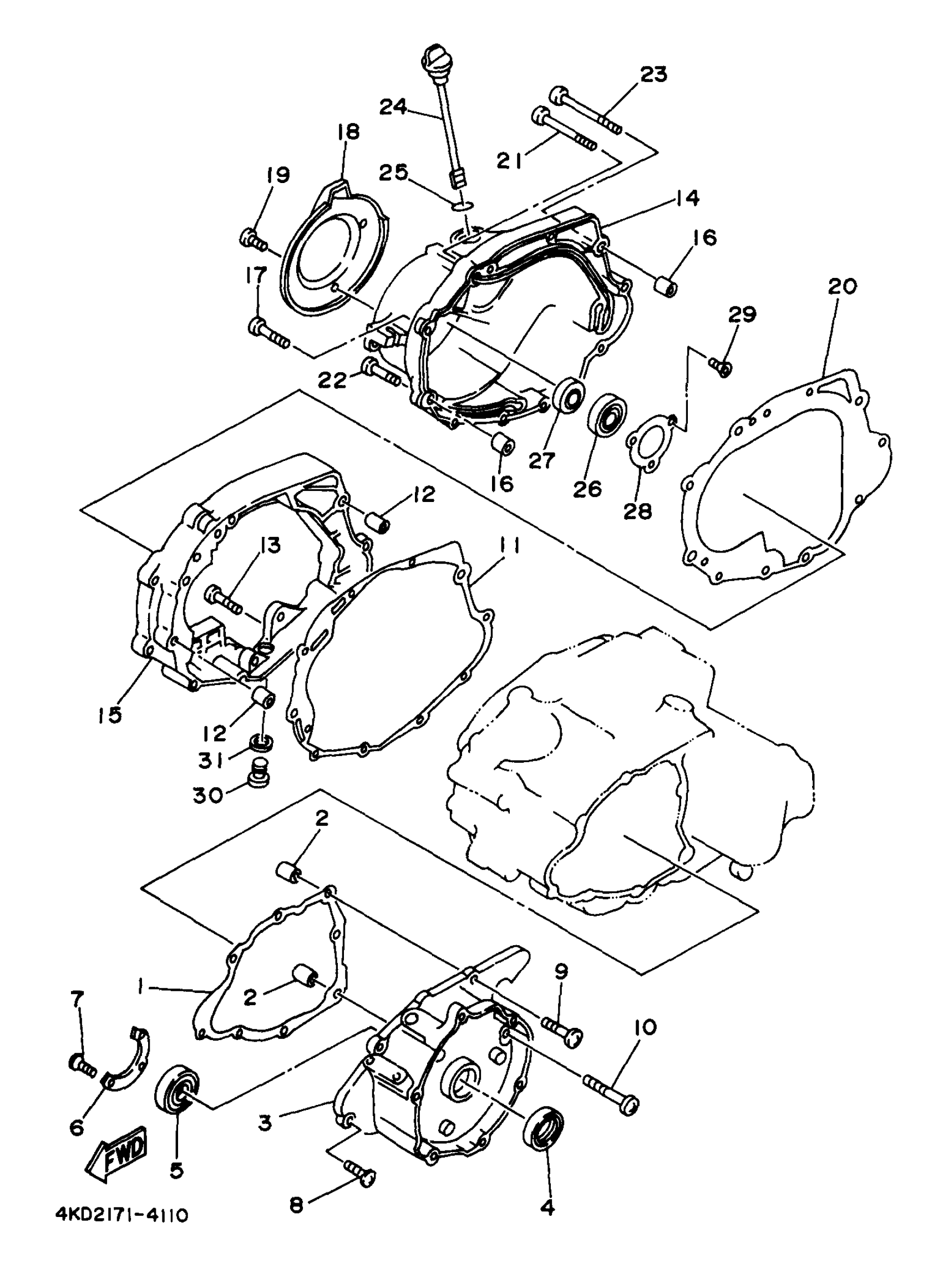 Yamaha YFB250FWJ (TIMBERWOLF 4WD) 4KDB 1997 CRANKCASE COVER 1 Diagram
