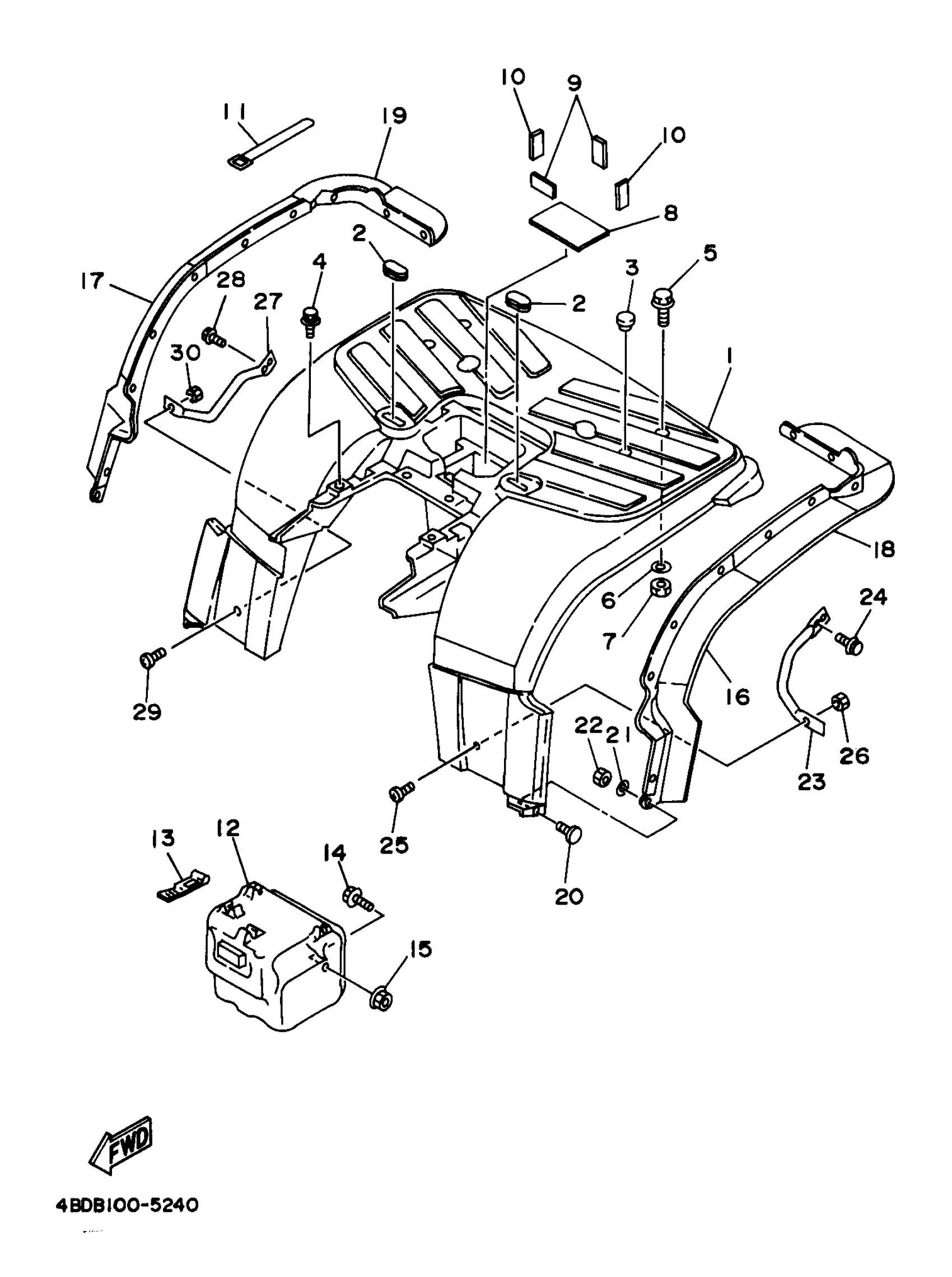 Yamaha YFB250FWK (TIMBERWOLF 4WD) 4KDF 1998 REAR FENDER Diagram