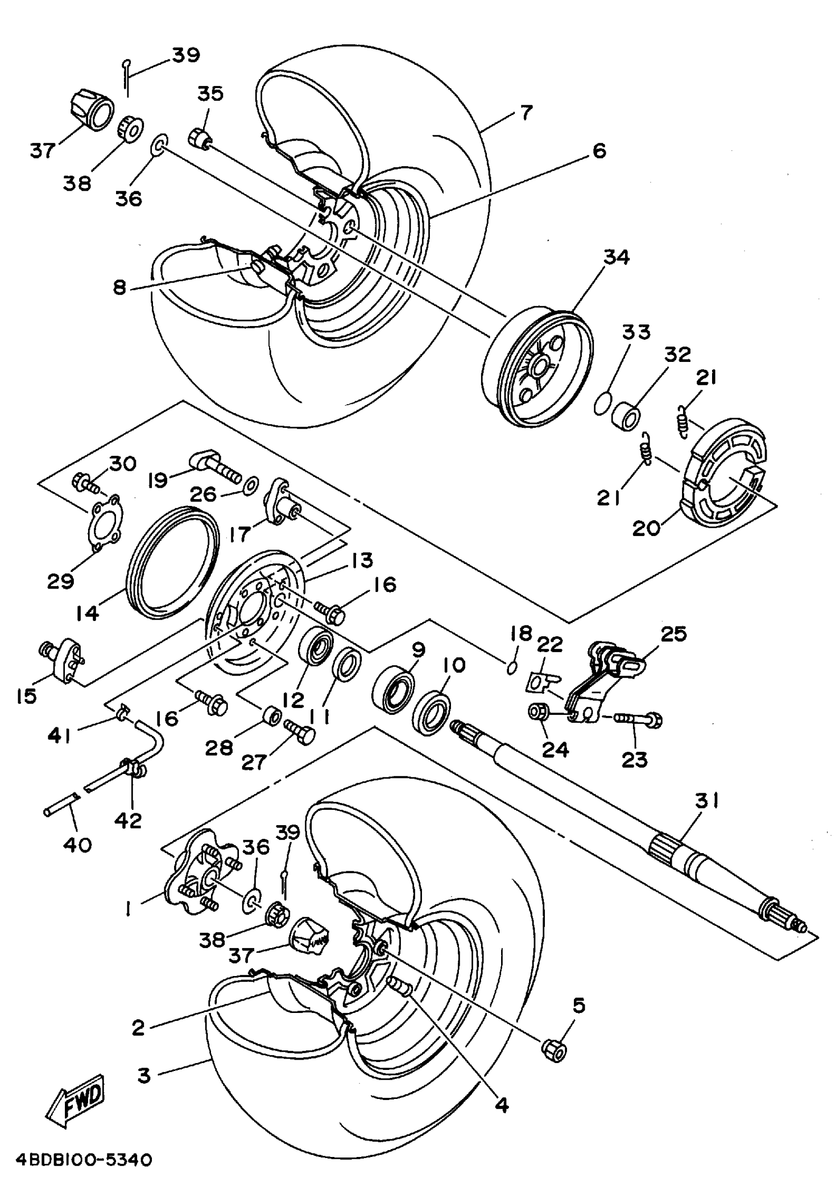 Yamaha YFB250G (TIMBERWOLF 2WD) 1995 REAR WHEEL Diagram