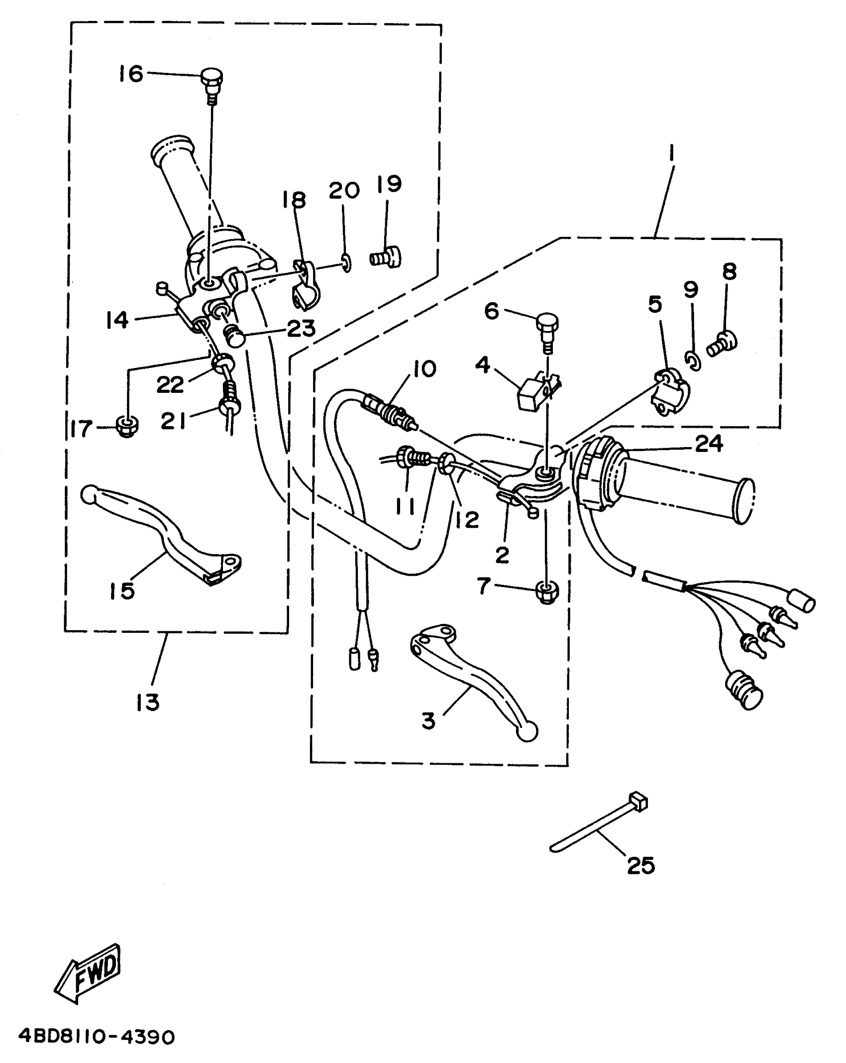 Yamaha YFB250UH 1996 HANDLE SWITCH - LEVER Diagram