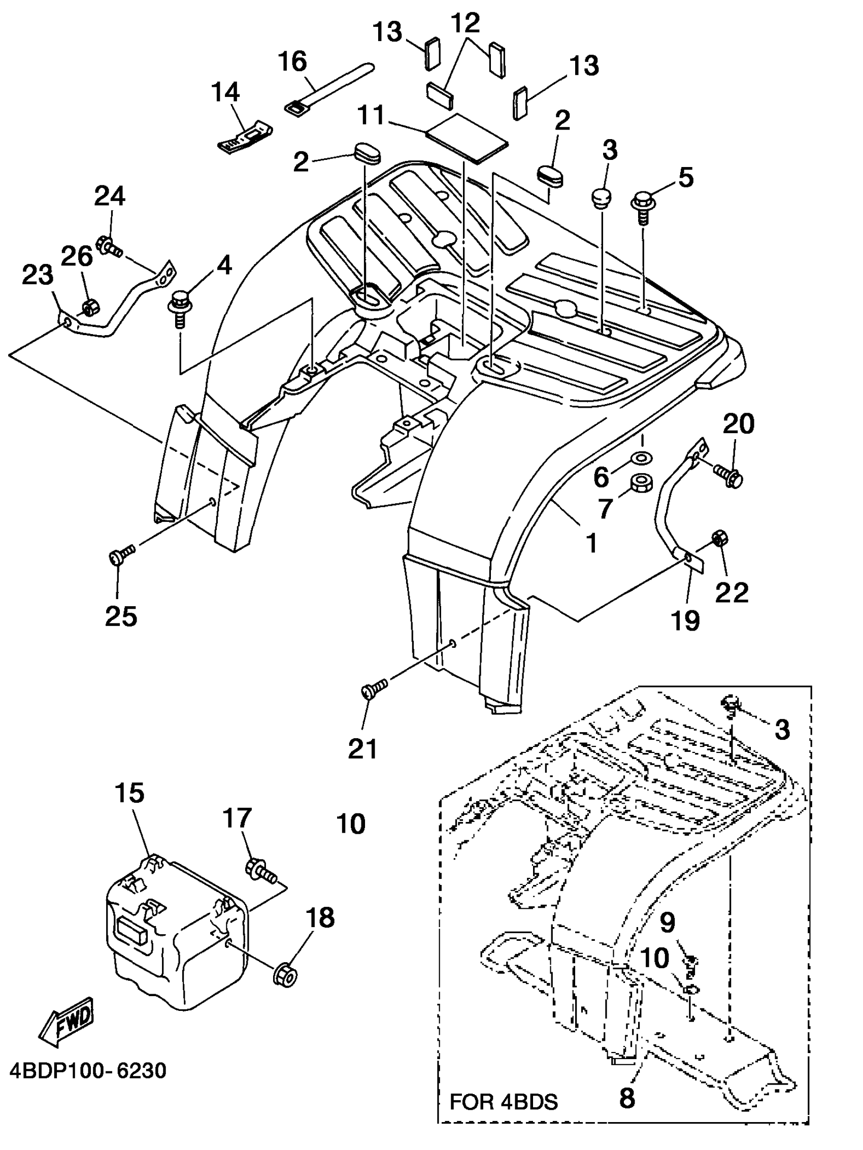 Yamaha YFB250UK (TIMBERWOLF) 4BDP 1998 REAR FENDER 1 Diagram