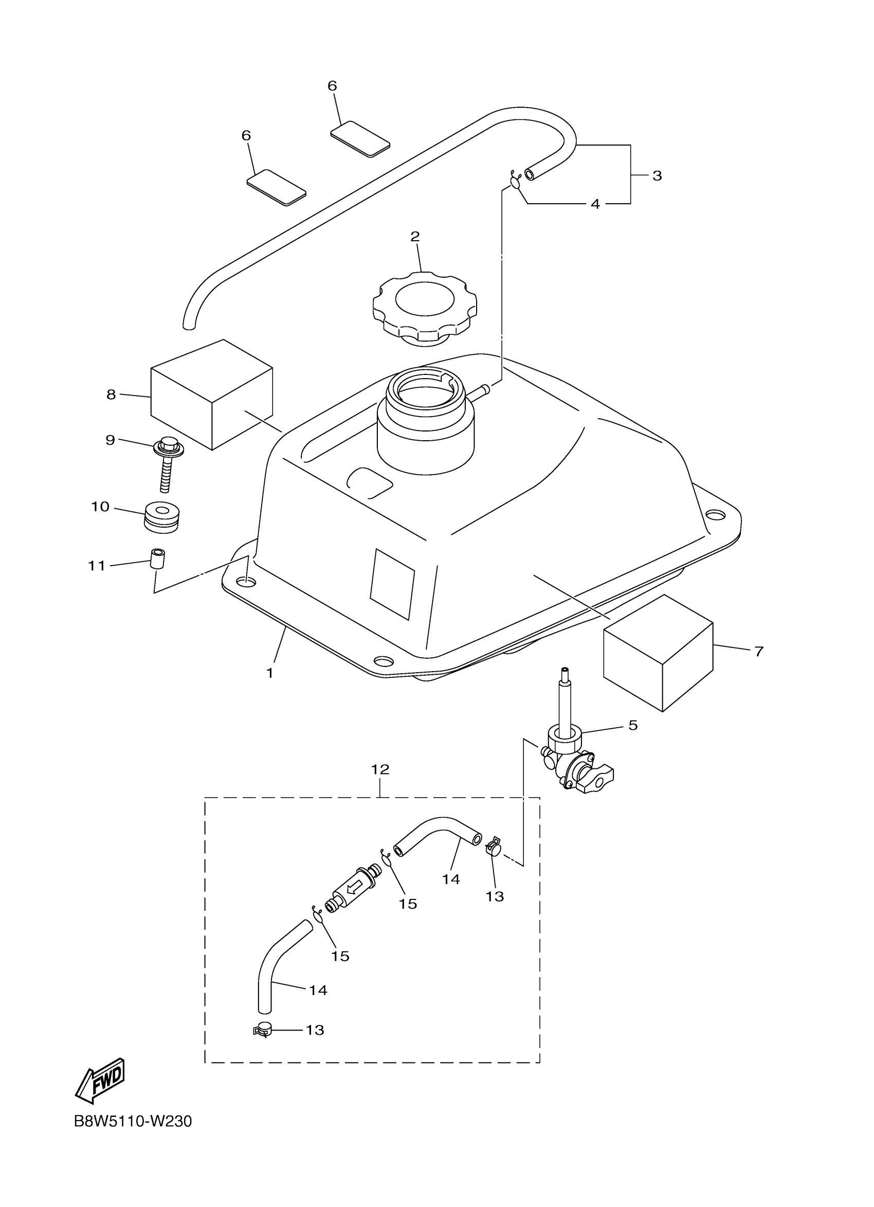 Yamaha YFM09GYXRW (GRIZZLY 90) B8WB 2024 FUEL TANK Diagram