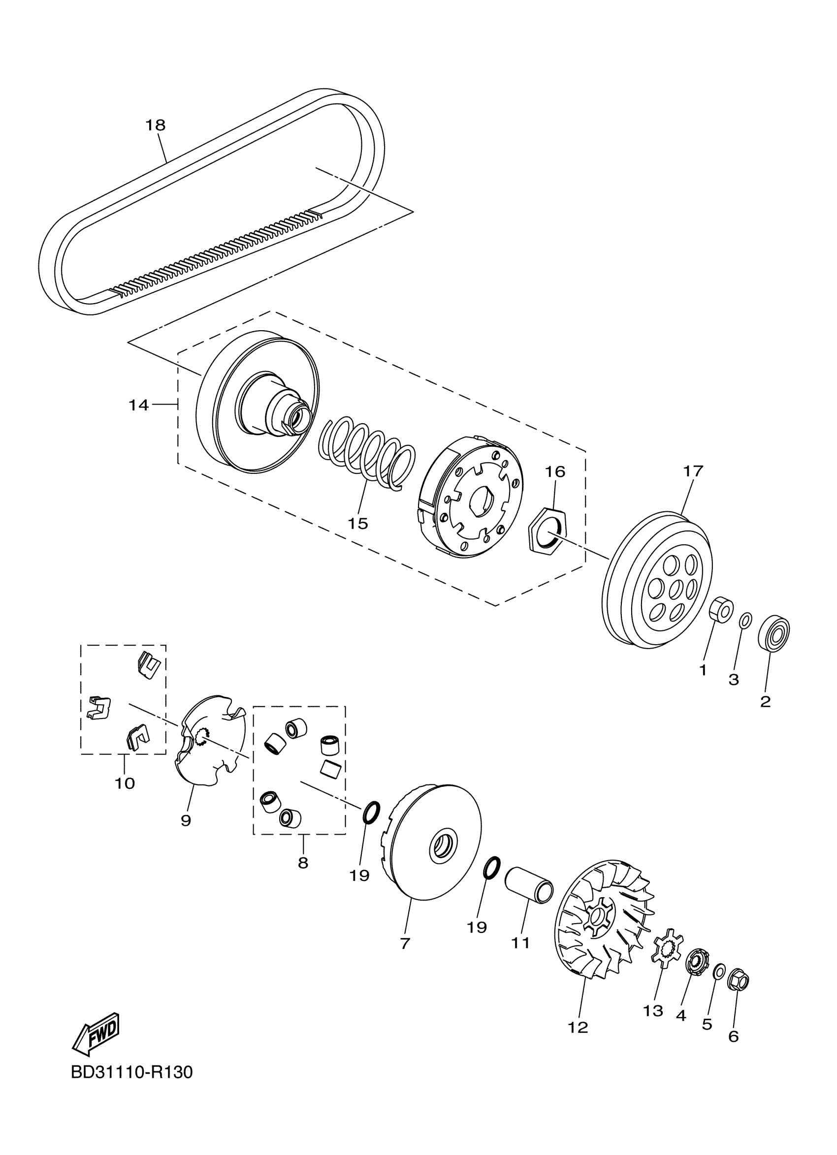 Yamaha YFM09RYXMW (RAPTOR 90) BD3G1 2021 CLUTCH Diagram