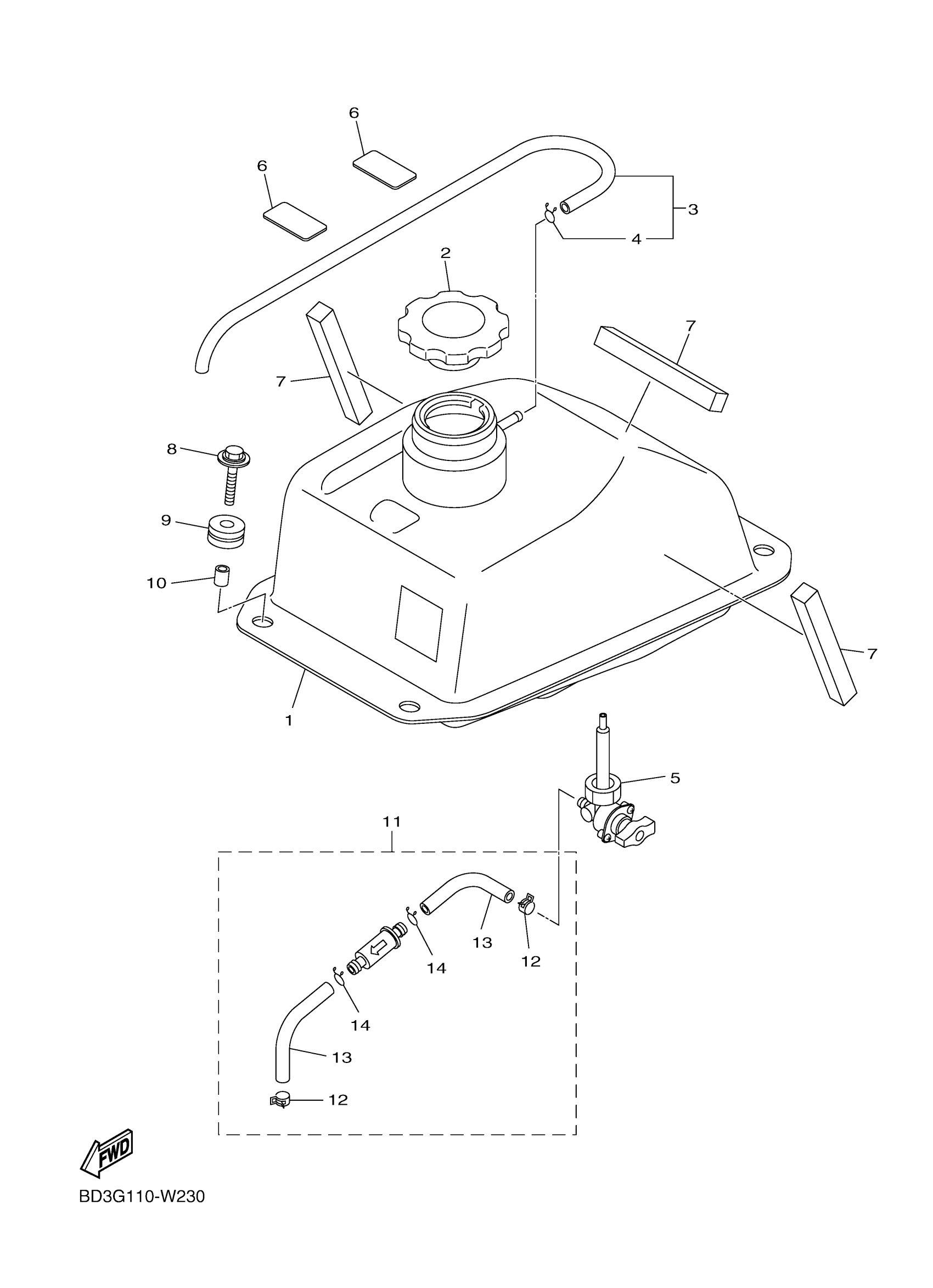 Yamaha YFM09RYXPW (RAPTOR 90) BD3N0 2023 FUEL TANK Diagram