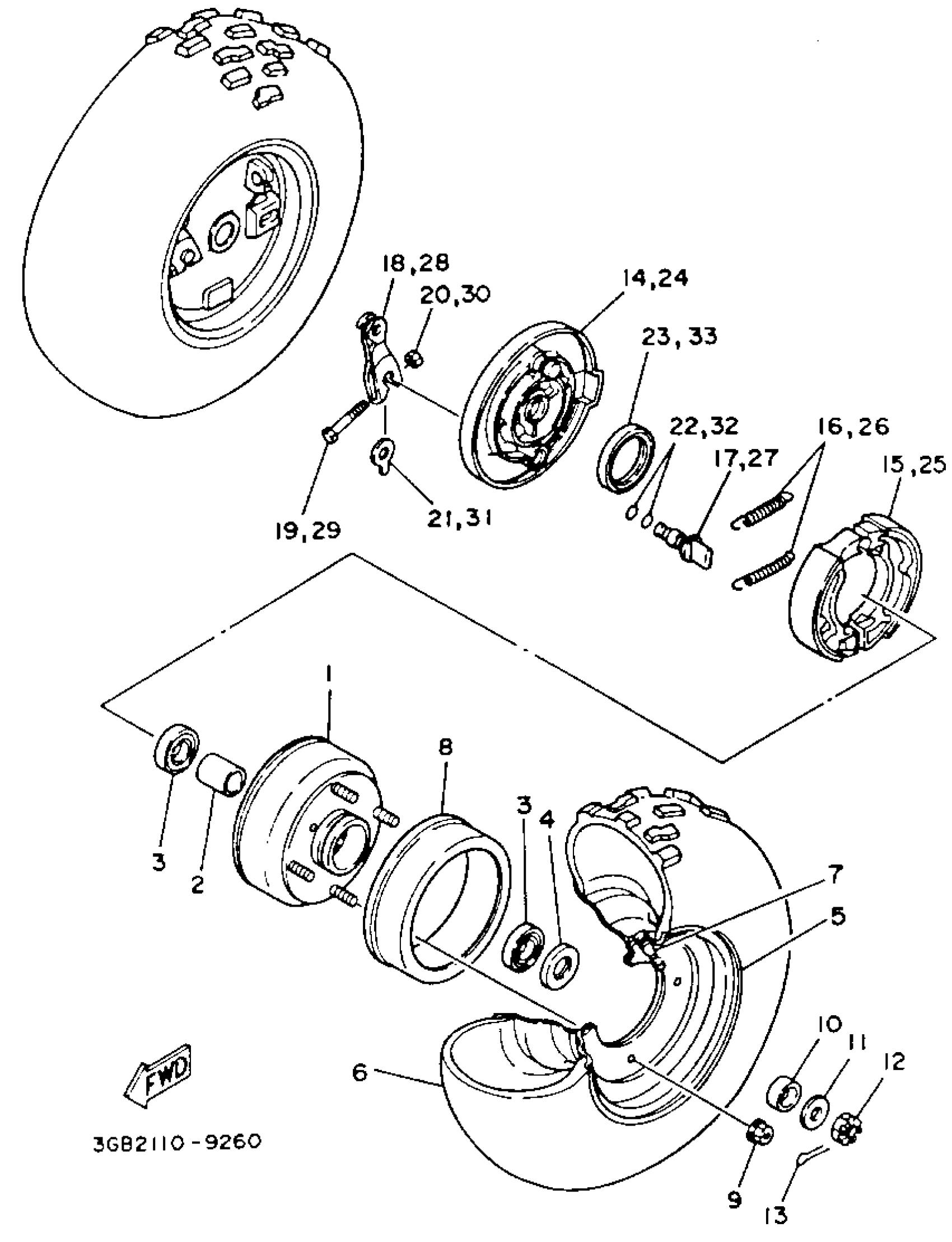 Yamaha YFM100A (CHAMP) 3GB3 1990 FRONT WHEEL Diagram