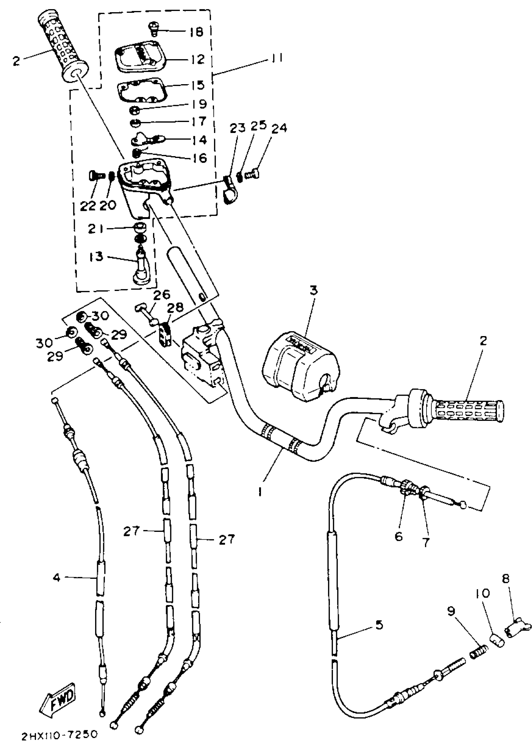 Yamaha YFM100T (CHAMP) 1987 HANDLEBAR - CABLE Diagram