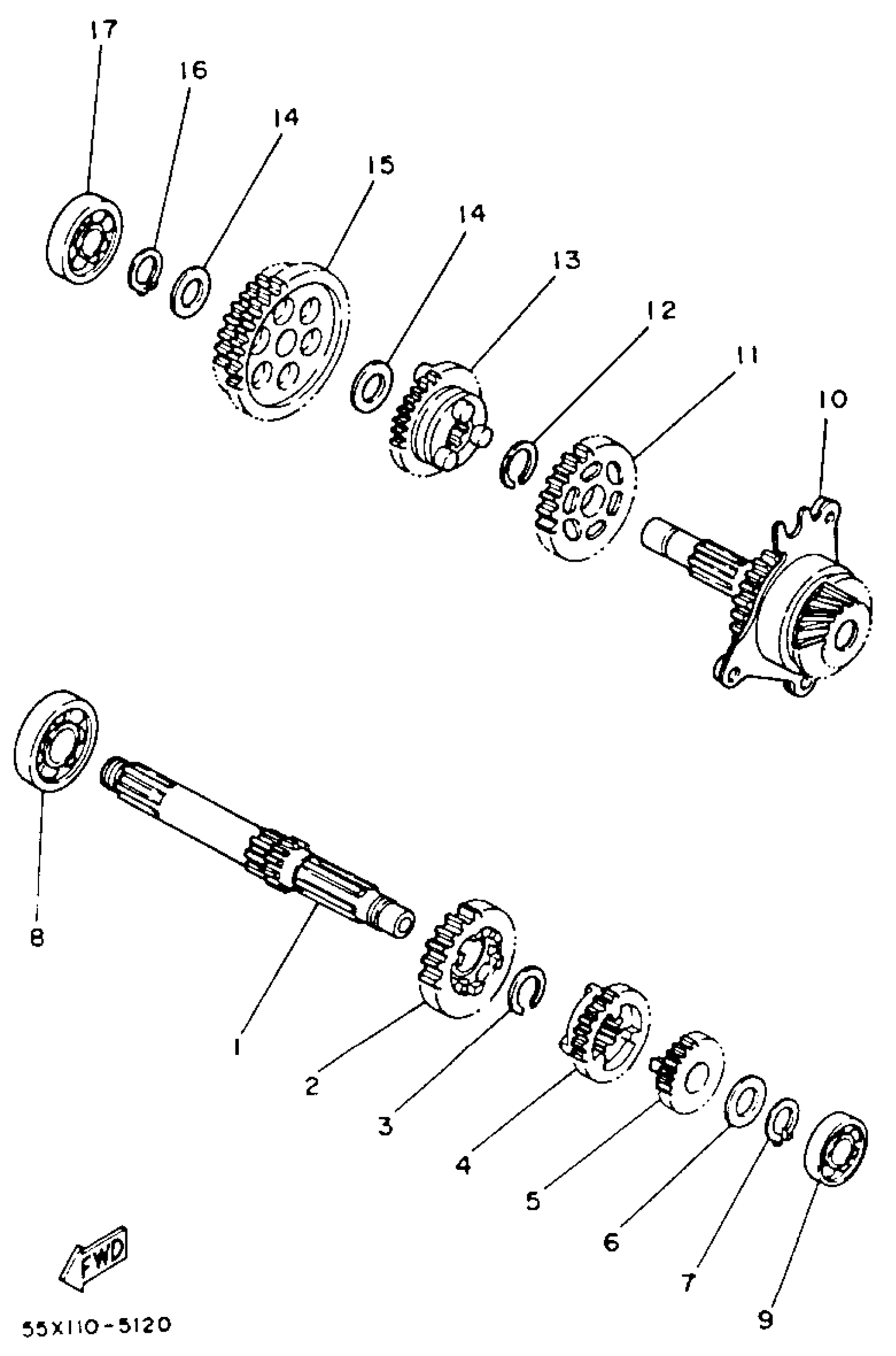 Yamaha YFM100U (CHAMP) 1988 TRANSMISSION Diagram
