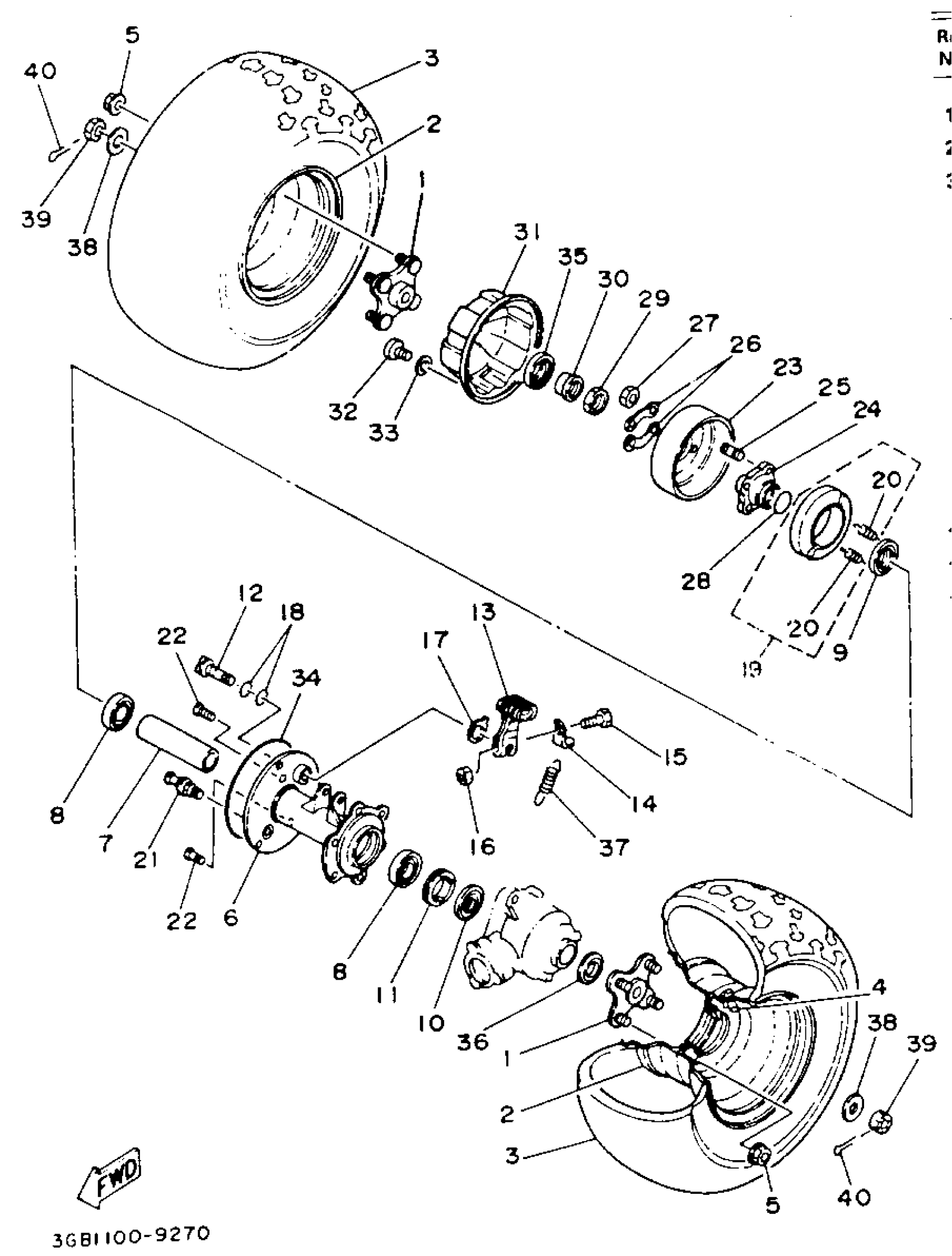 Yamaha YFM100W (CHAMP) 1989 REAR WHEEL Diagram