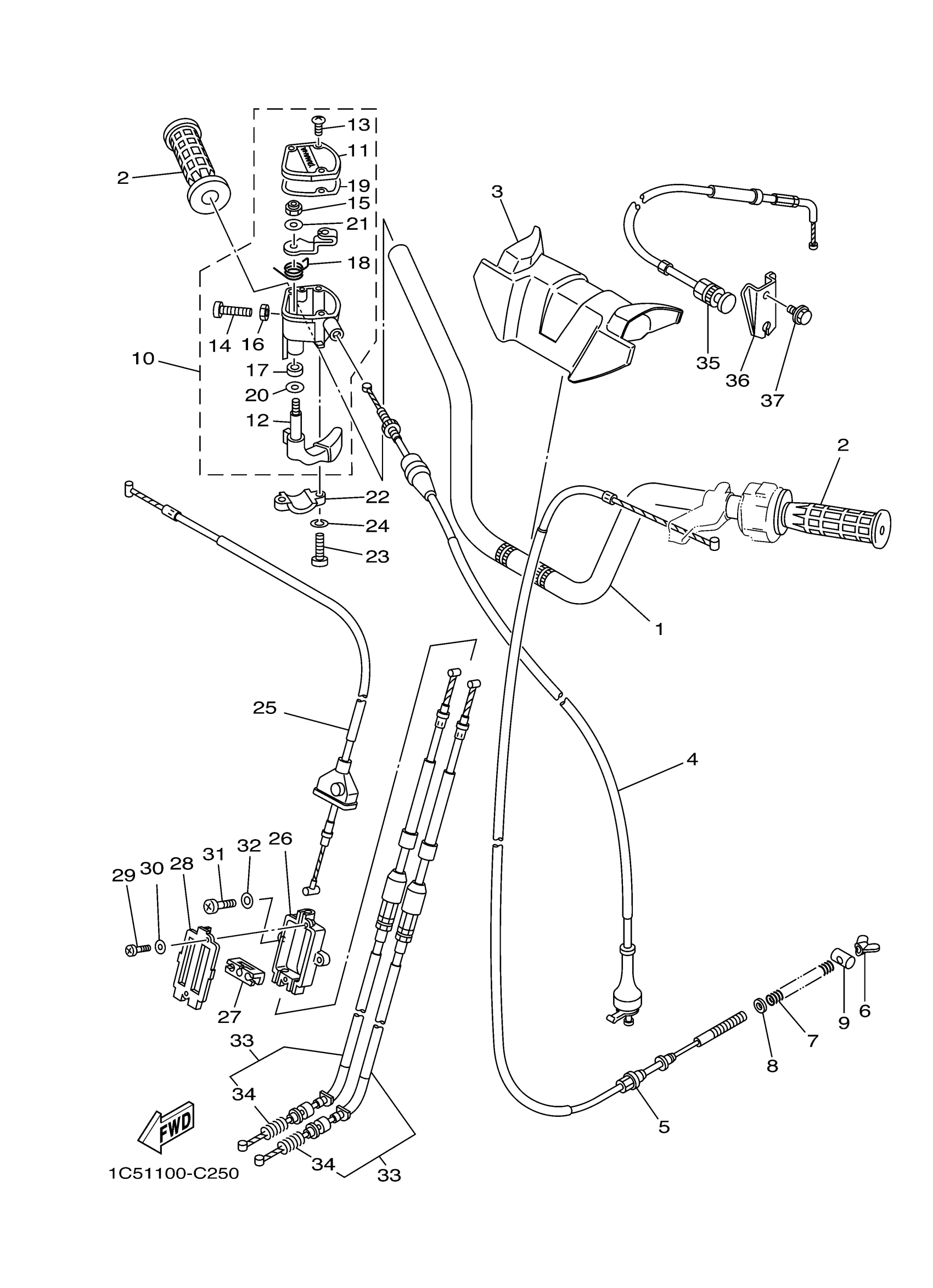 Yamaha YFM125GHX (GRIZZLY 125 HUNTER) 1C5L 2008 STEERING HANDLE CABLE Diagram