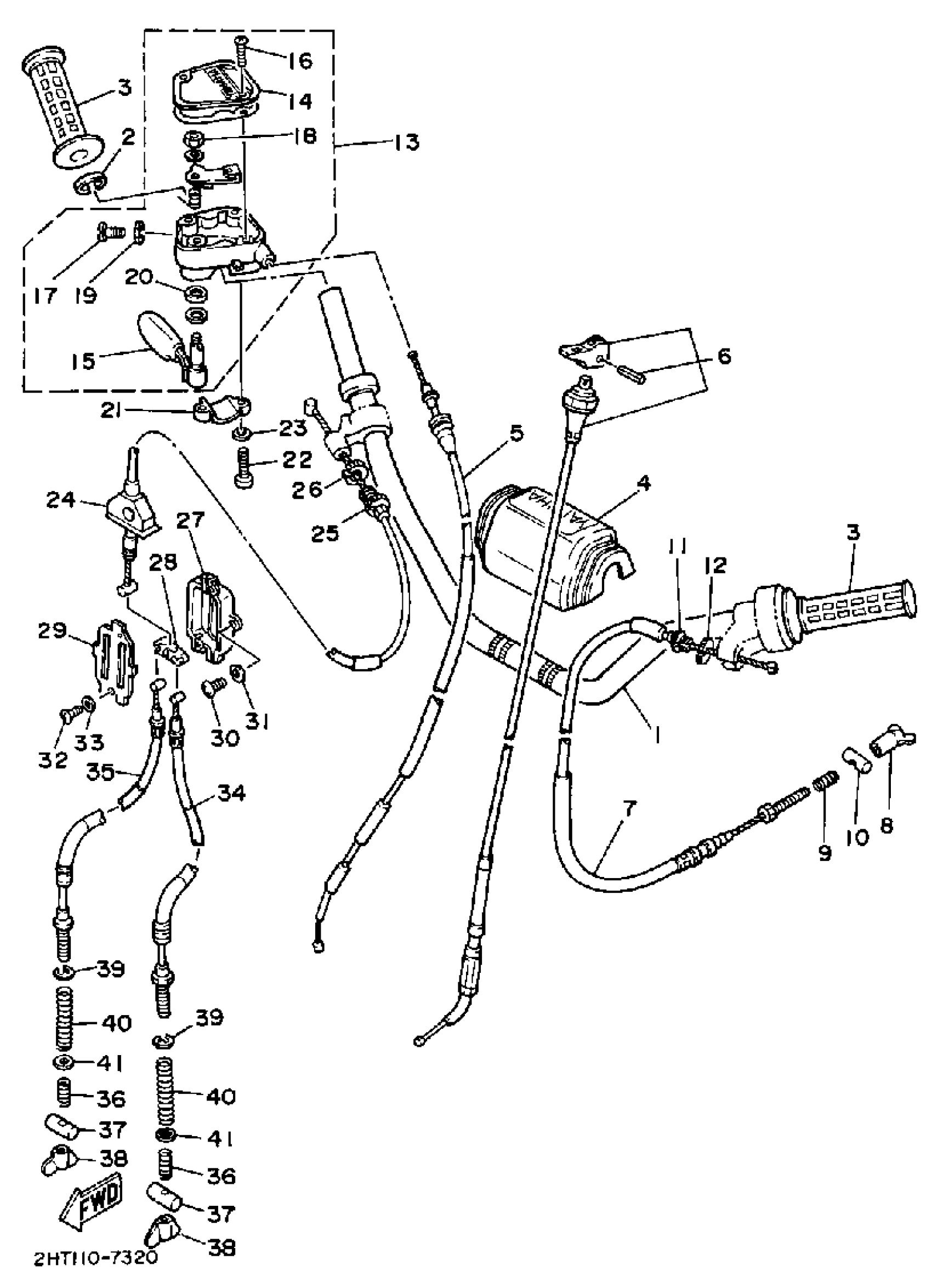 Yamaha YFM225T (MOTO-4) 1987 HANDLEBAR CABLE Diagram