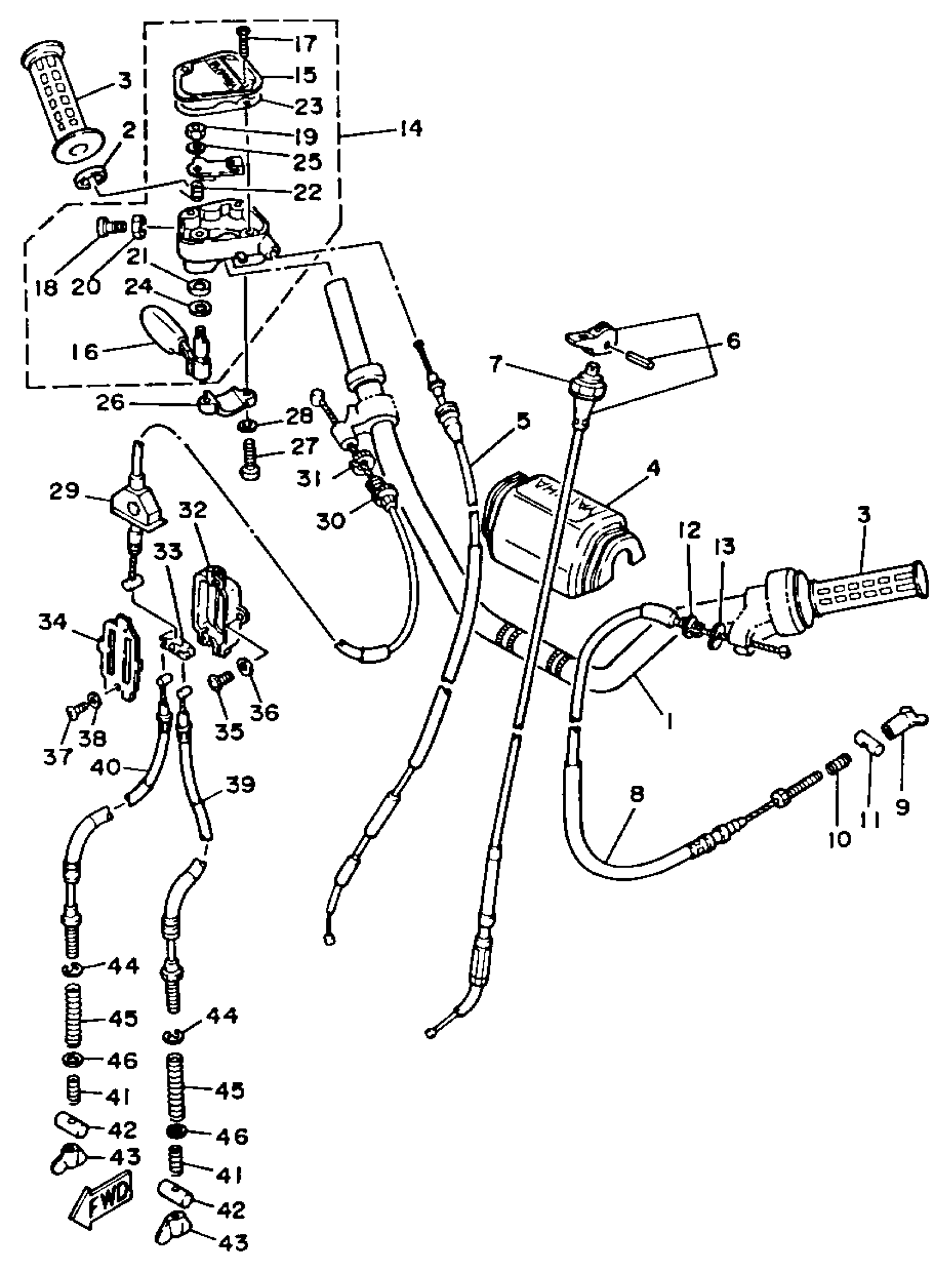 Yamaha YFM225U (MOTO-4) 1988 HANDLEBAR CABLE Diagram