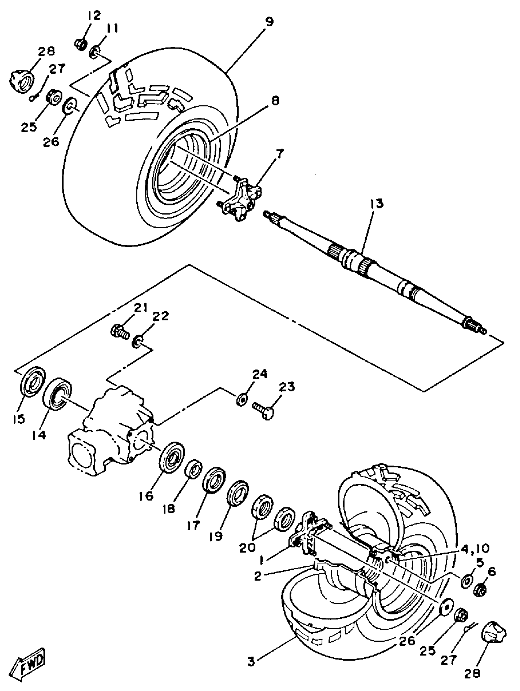 Yamaha YFM225U (MOTO-4) 1988 REAR WHEEL Diagram