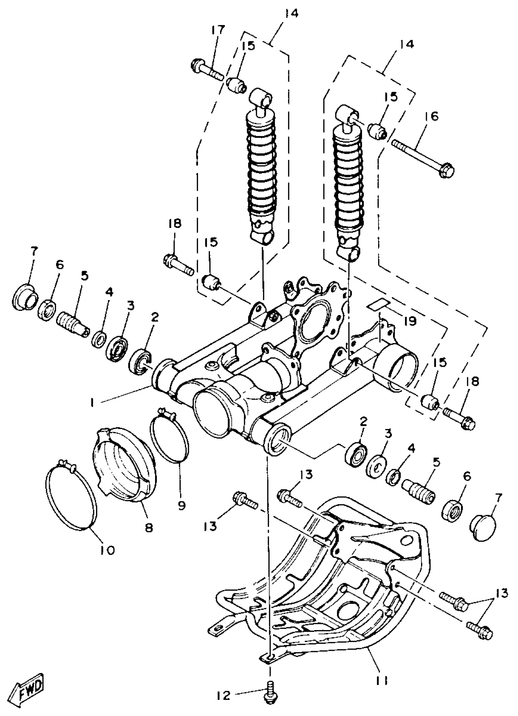Yamaha YFM225U (MOTO-4) 1988 SWING ARM REAR SHOCKS Diagram