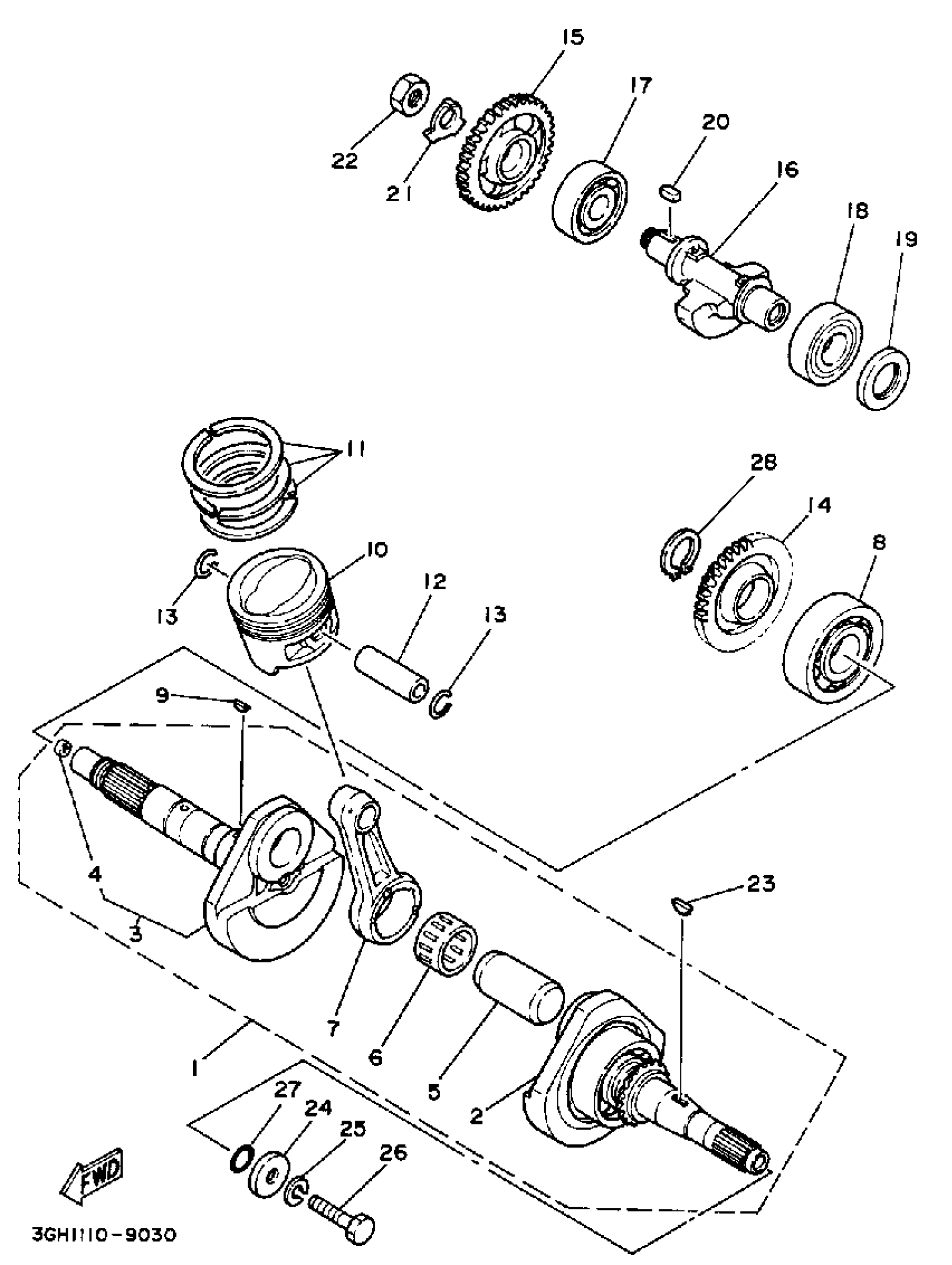 Yamaha YFM250A (MOTO-4) 1990 CRANKSHAFT-PISTON Diagram