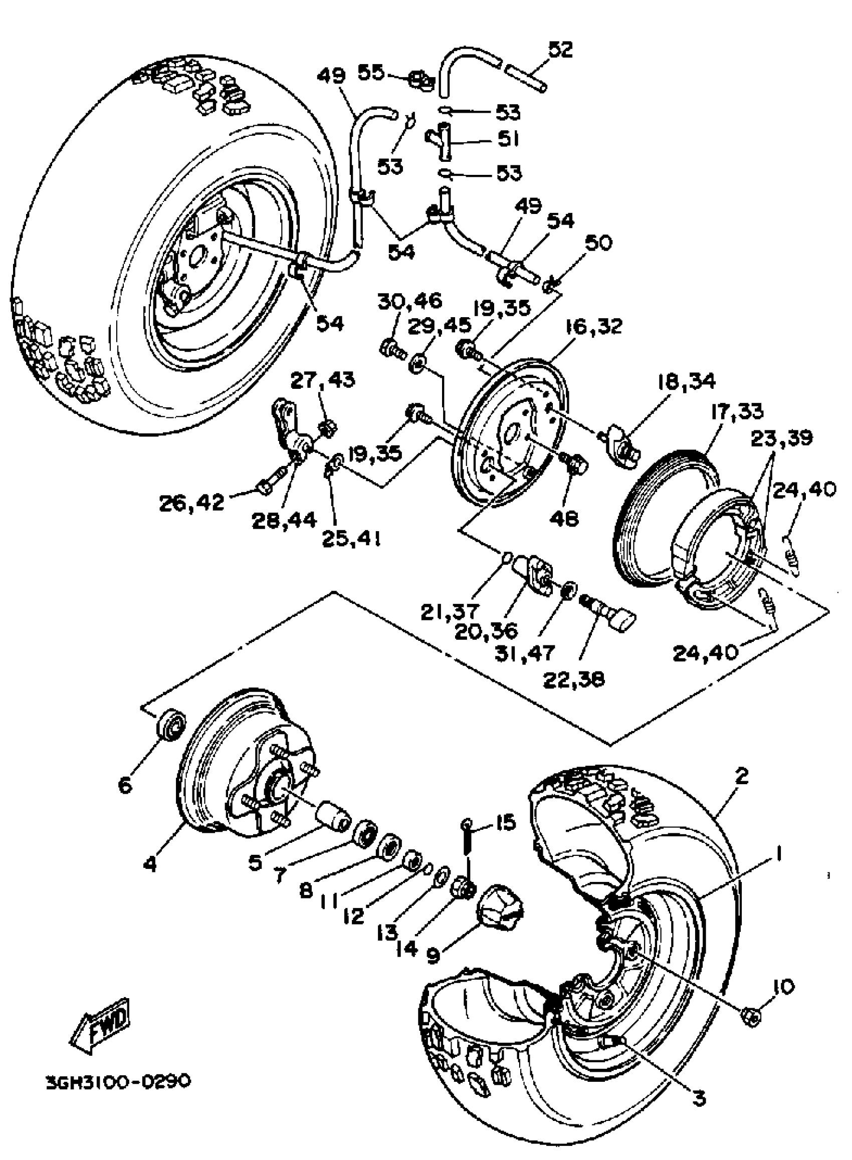 Yamaha YFM250A (MOTO-4) 1990 FRONT WHEEL Diagram