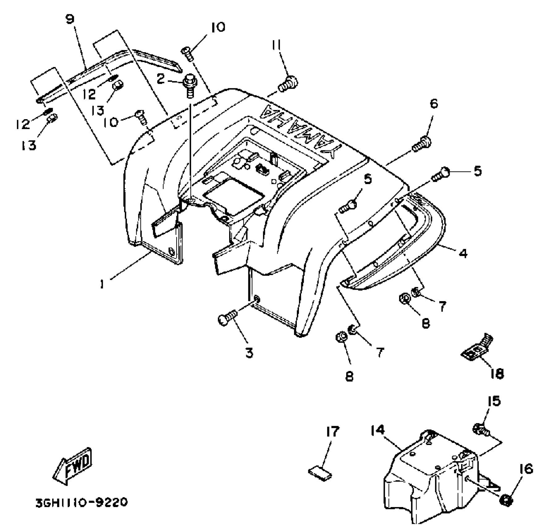 Yamaha YFM250A (MOTO-4) 1990 REAR FENDER Diagram