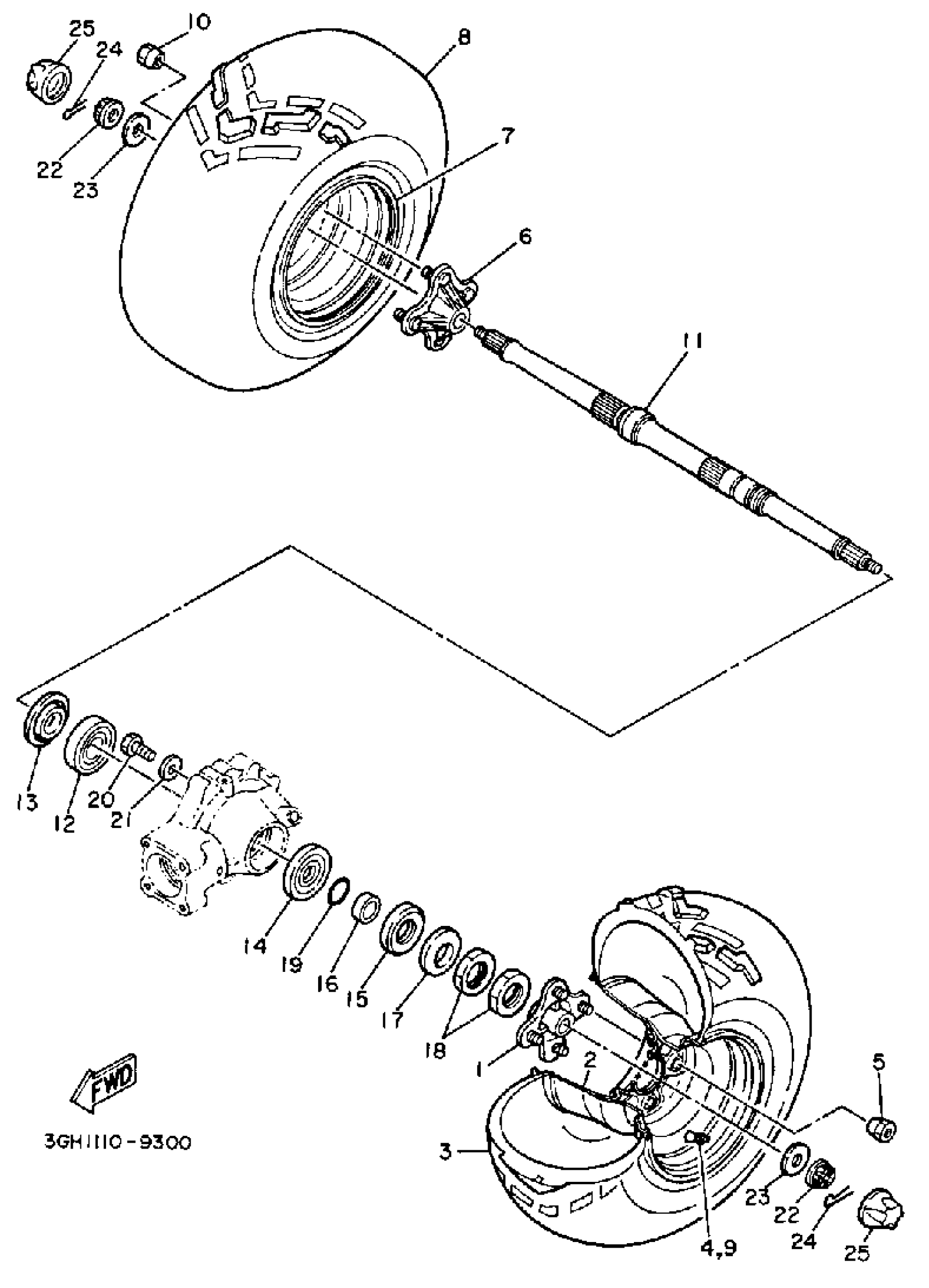 Yamaha YFM250B (MOTO-4) 3GH5 1991 REAR WHEEL Diagram
